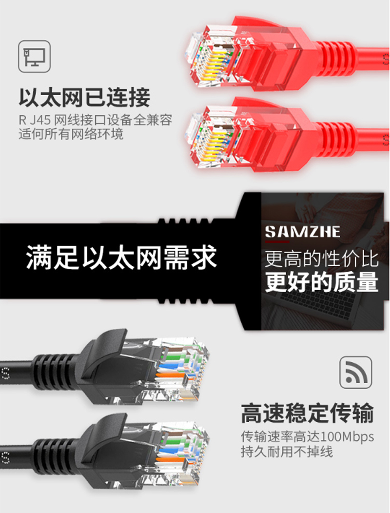 商品名称:☆山泽 SAMZHE 高速超五类CAT5E类网线 百兆网络连接线 电脑网络跳线 超5类成品网线 黑色50米 SH-1500