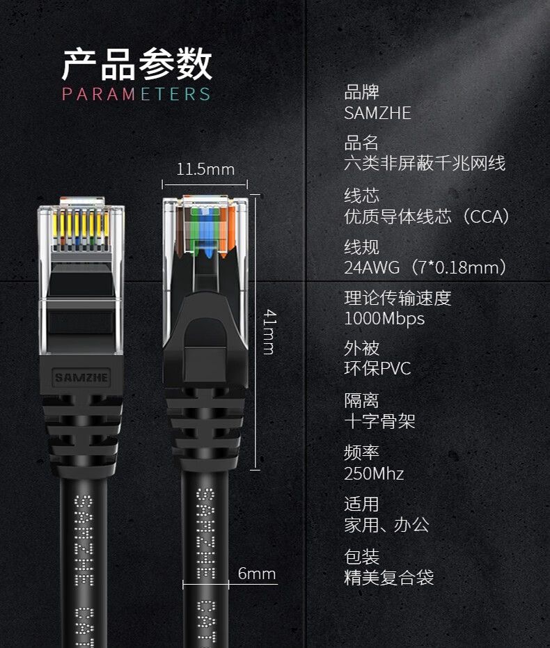 商品名称:☆山泽 SAMZHE CAH-6005 六类CAT6网线 0.5米 黑色