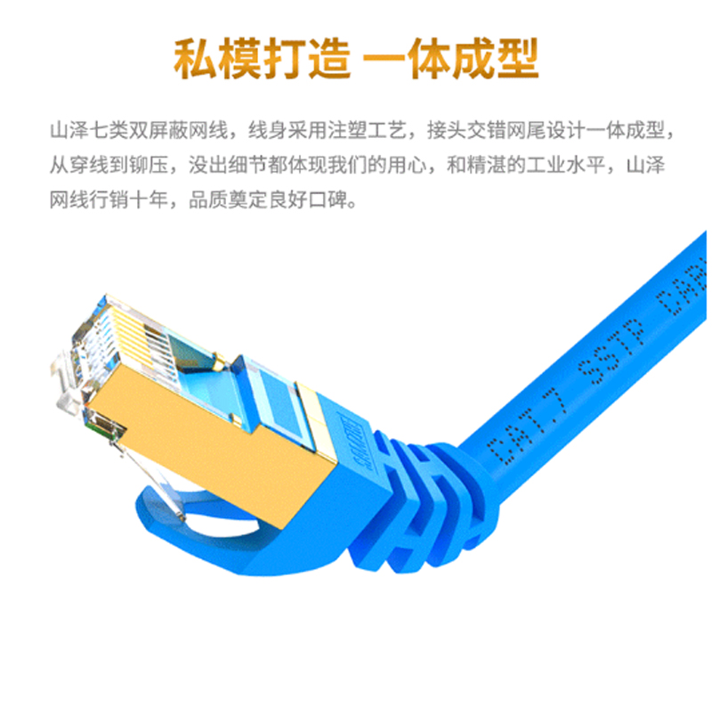 ☆山泽 SAMZHE 工程级七类CAT7类纯铜镀金双屏蔽高速网络跳线 万兆成品网线 网络连接线 蓝色15米 CAT-715L