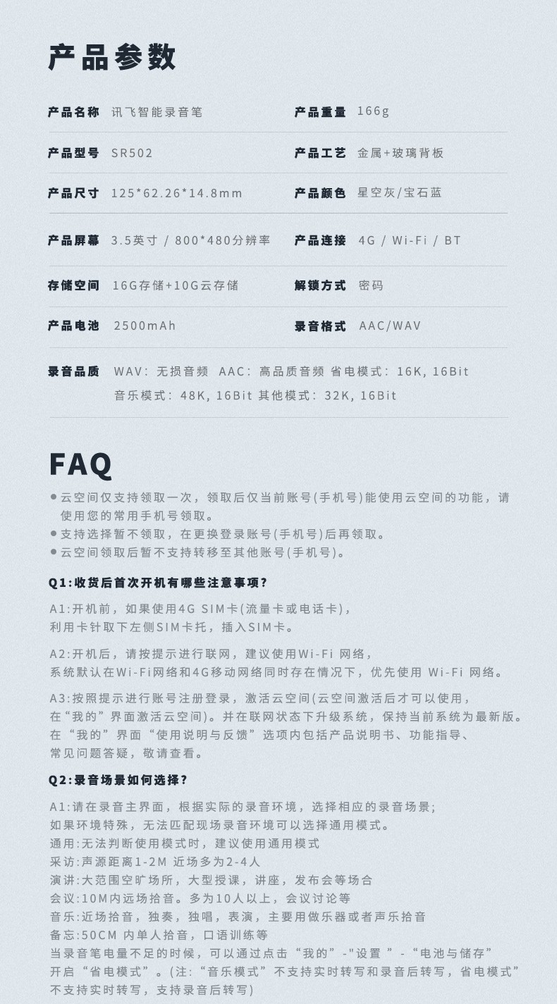 商品名称:☆科大讯飞 SR501 智能录音笔 16G+云存储 玫瑰金