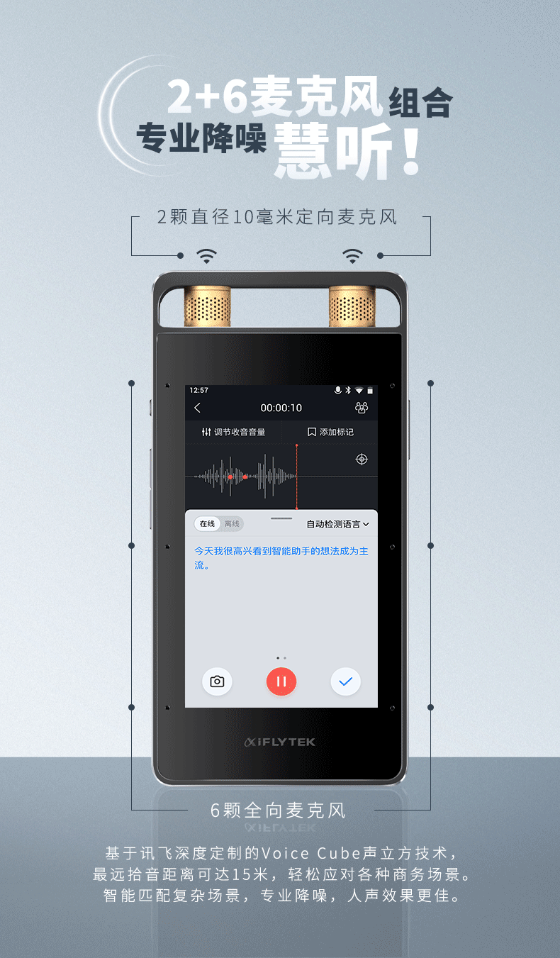 ☆科大讯飞 SR501 智能录音笔 16G+云存储 玫瑰金