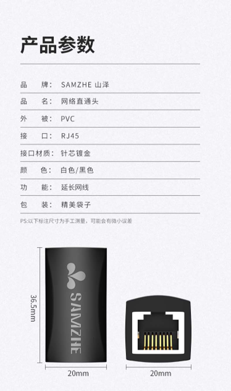 商品名称:☆山泽 SAMZHE RJ45 8P8C网线连接器 黑色
