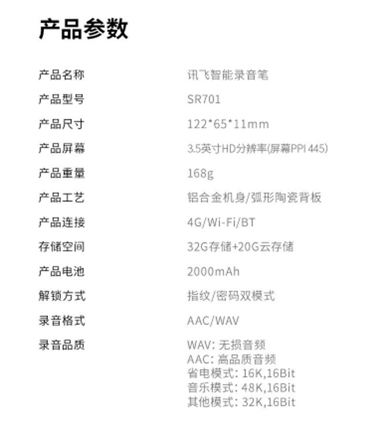 商品名称:☆科大讯飞 SR701 智能录音笔 32G+云存储 星空灰