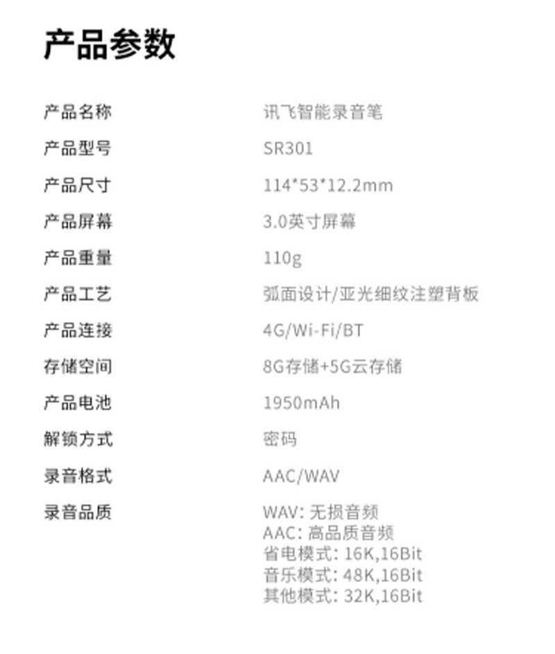 商品名称:☆科大讯飞 SR301 智能录音笔(赠送1年转写服务/8G+云存储) 星空灰