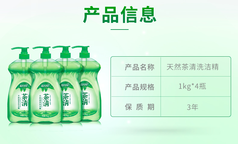 商品名称:蓝月亮 洗洁精组合:茶清天然绿茶洗洁精1kg×4