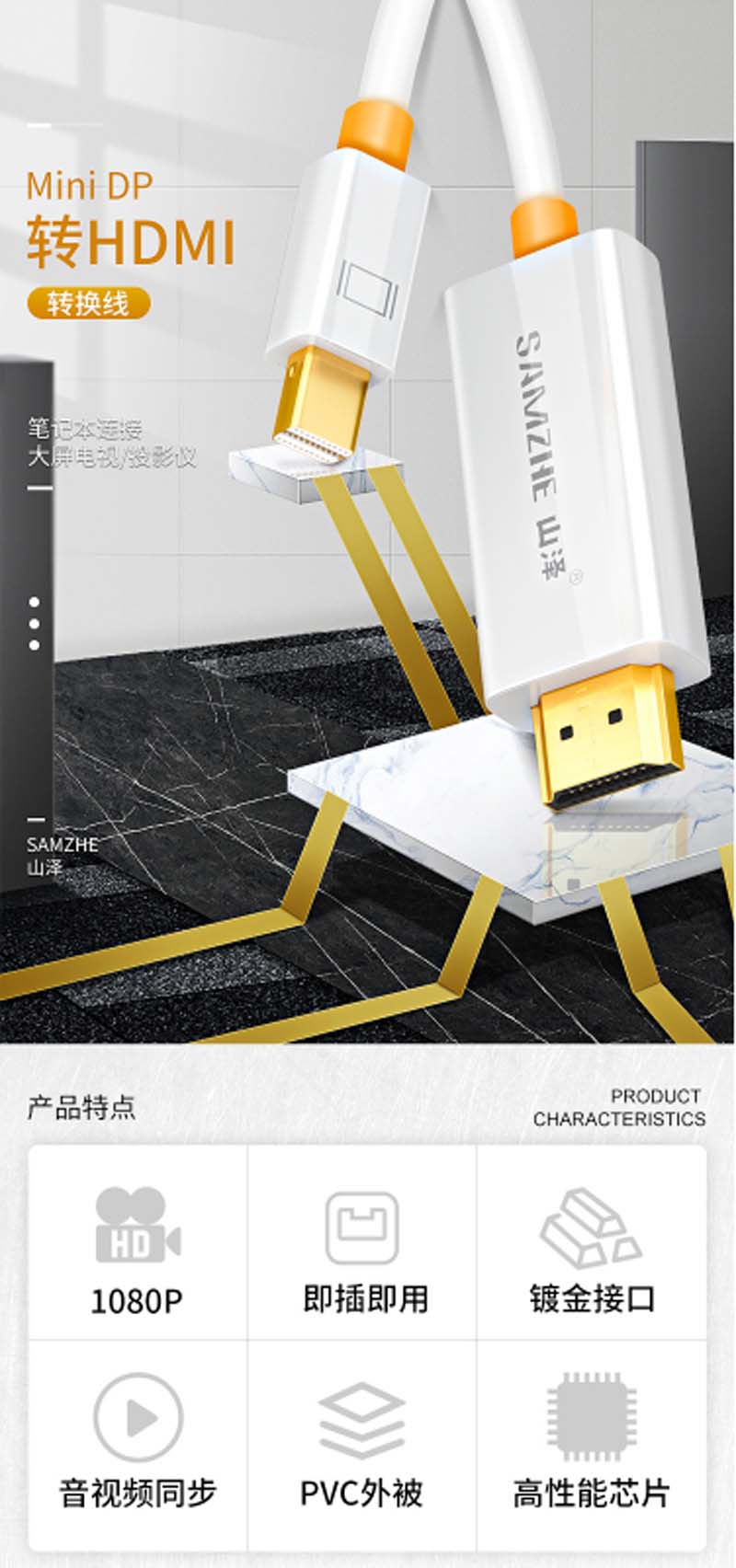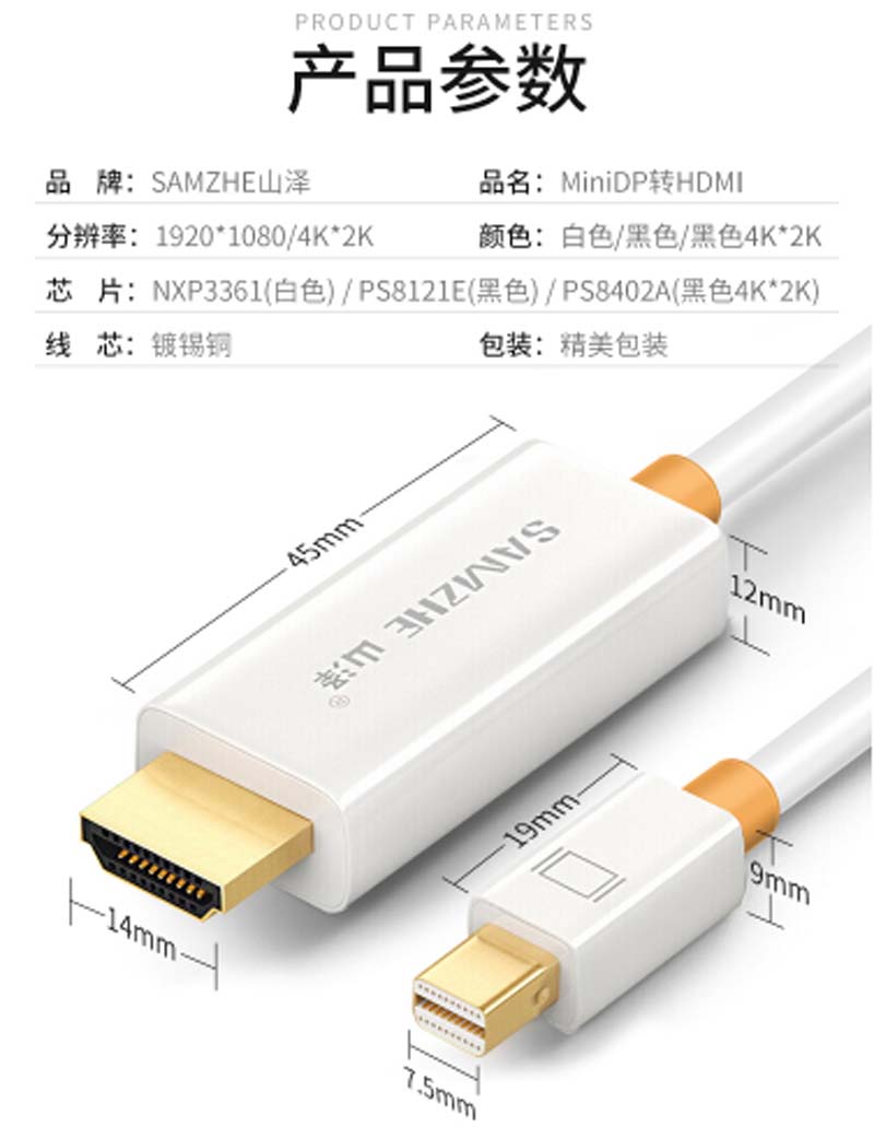 商品名称:☆山泽 SAMZHE MINI 20MDP DP转HDMI转换器线 黑色 2米