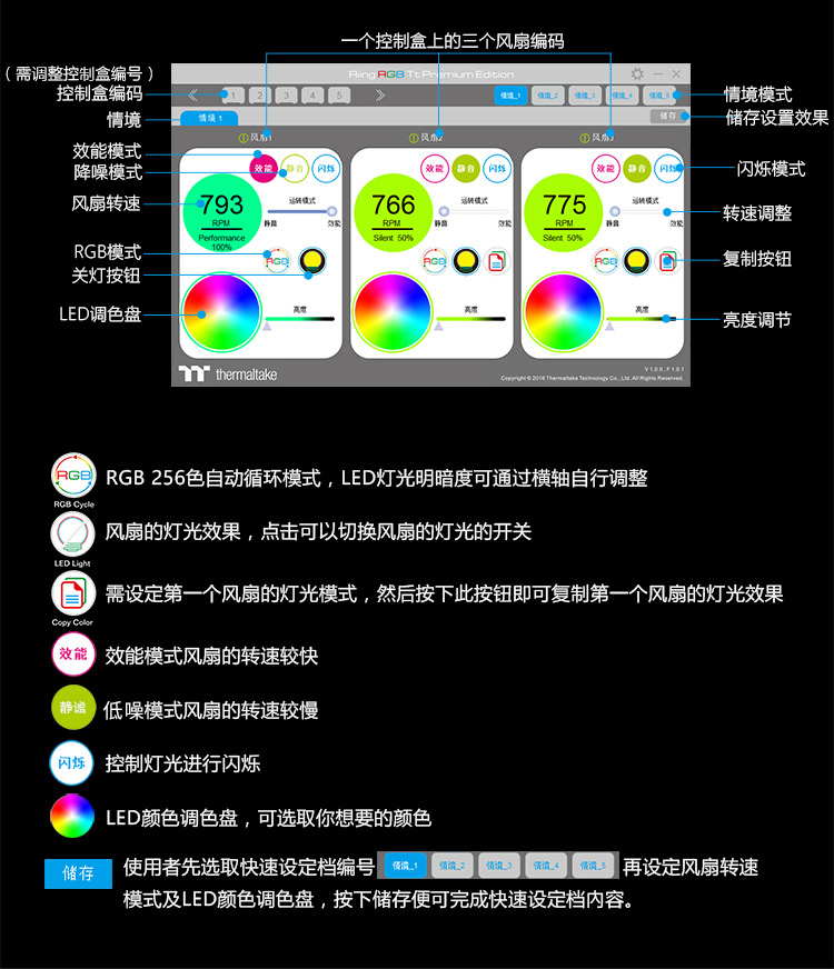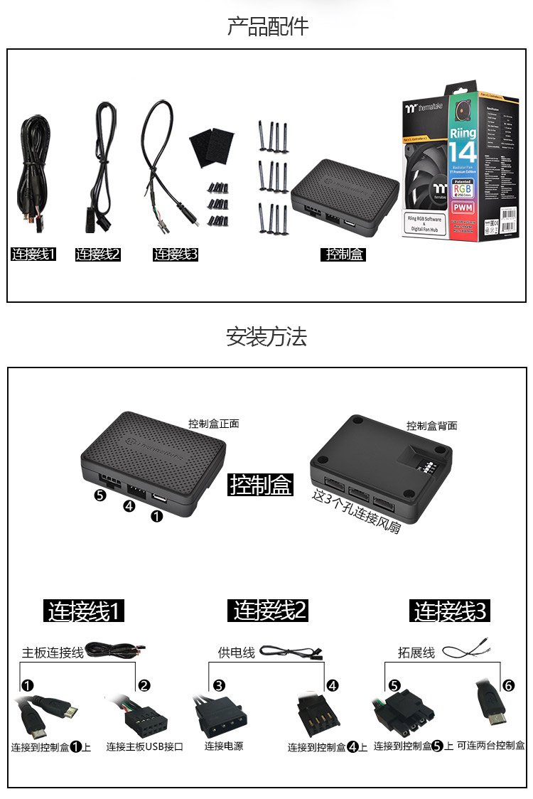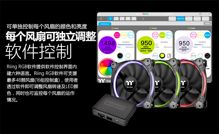 商品名称:☆TT THERMALTAKE RIING14CMRGB软体套装机箱风扇(256色/三风扇/液压轴承/强化减震系统/静音技术)