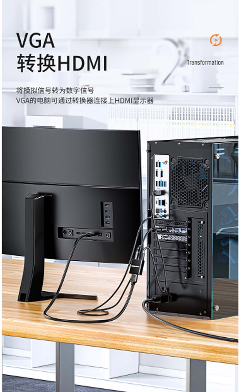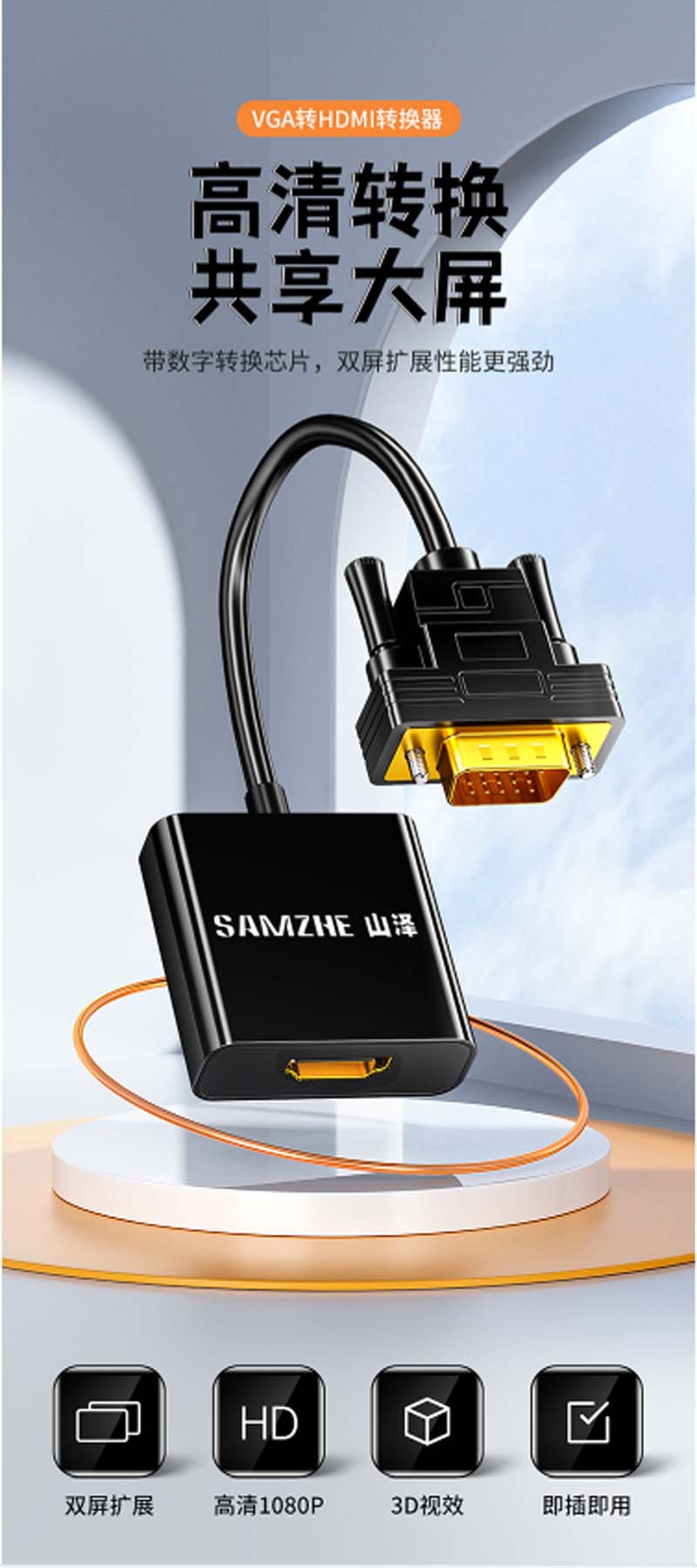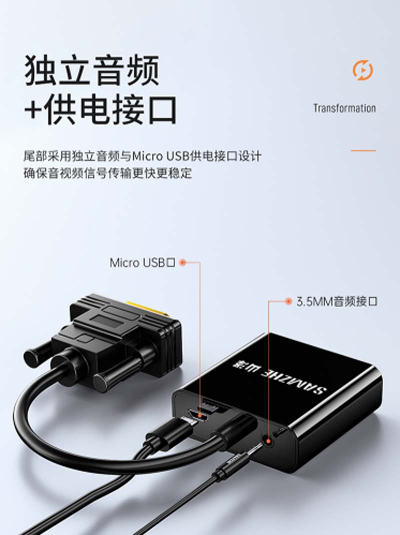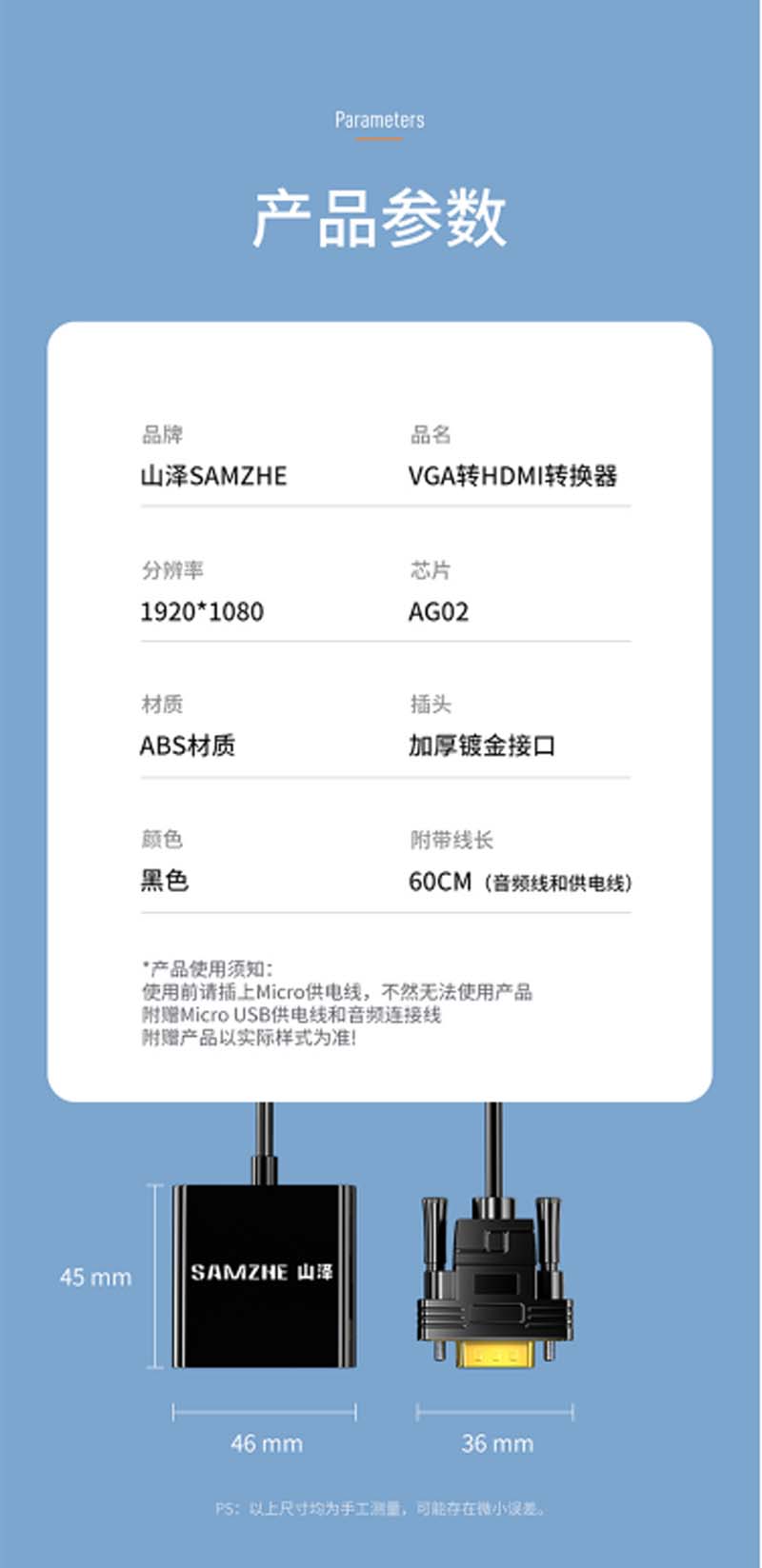商品名称:☆山泽 SAMZHE VH2018 VGA转HDMI线转换器(带音频供电) 黑色