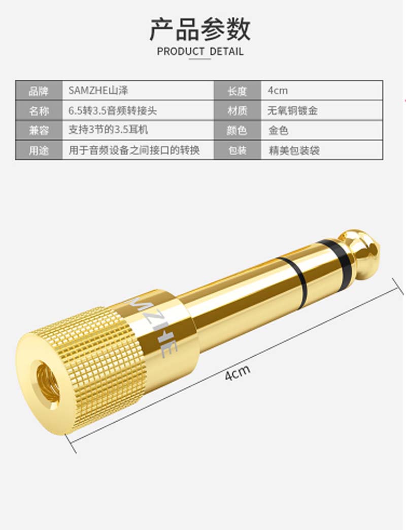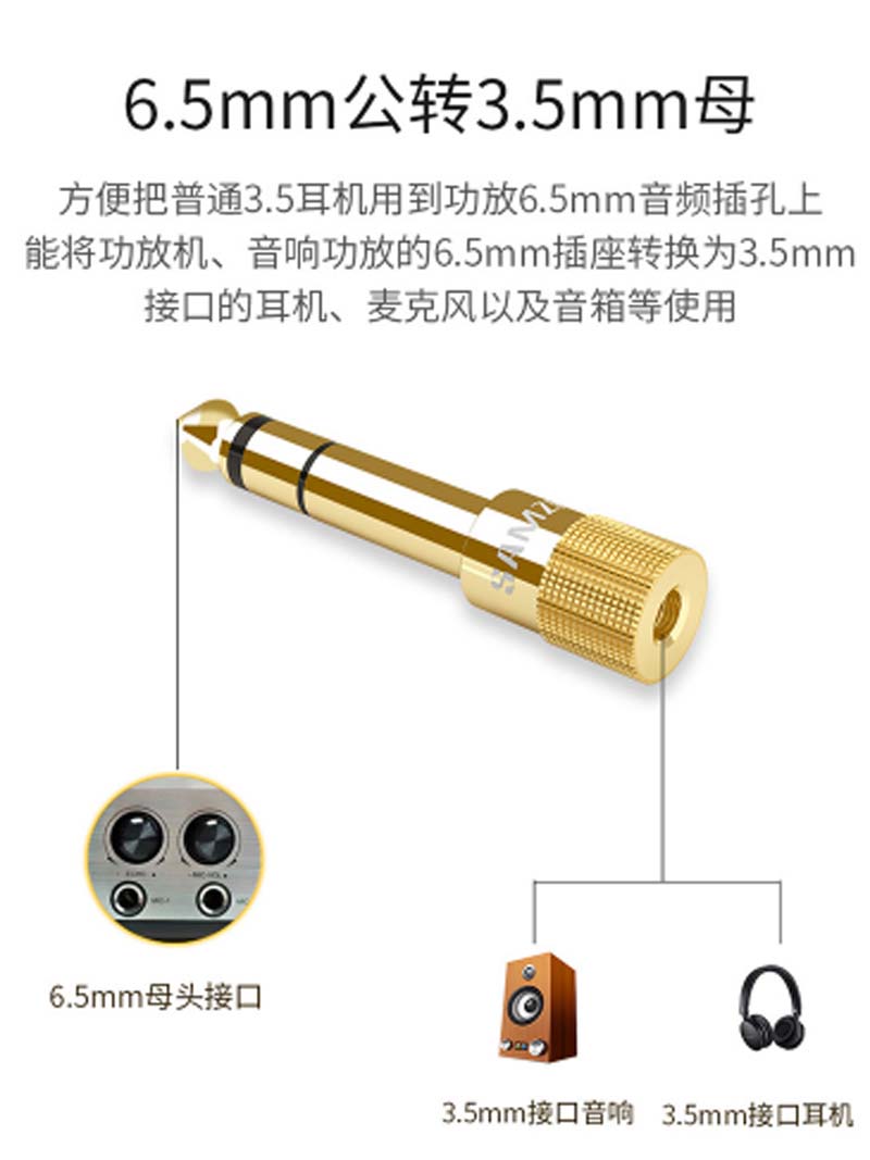 商品名称:☆山泽 SAMZHE MC-01 公对母 6.5转3.5音频转接头
