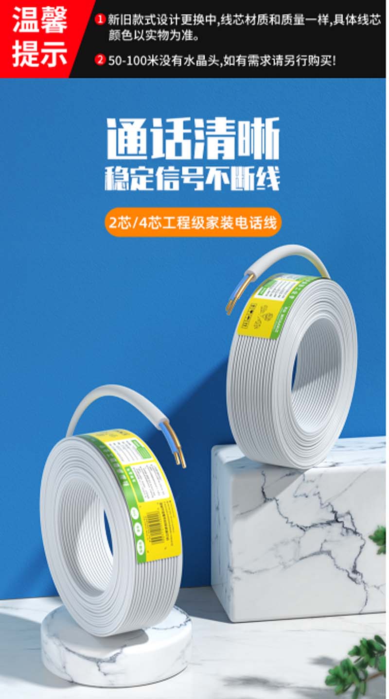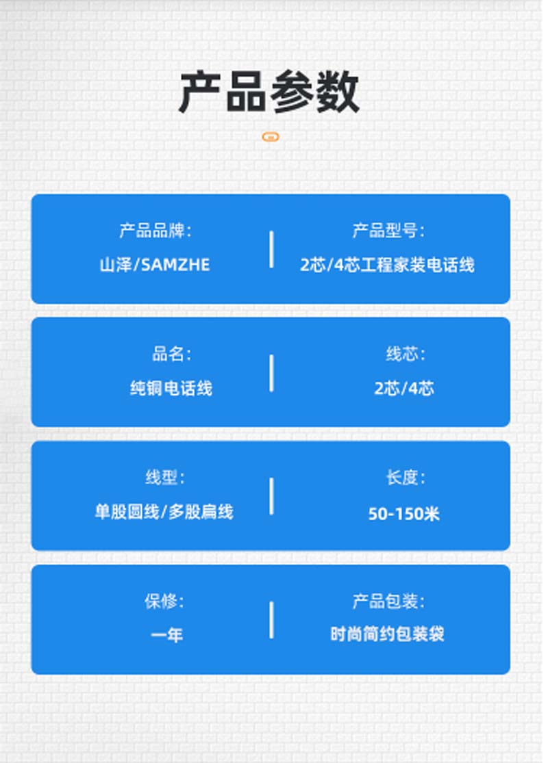 商品名称:☆山泽 SAMZHE M100A-2C 电话线2芯多股纯铜扁平 100米/卷