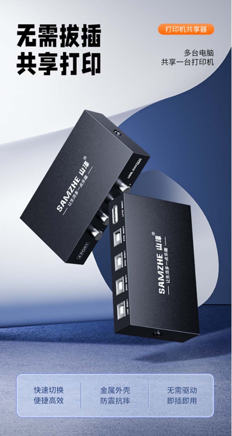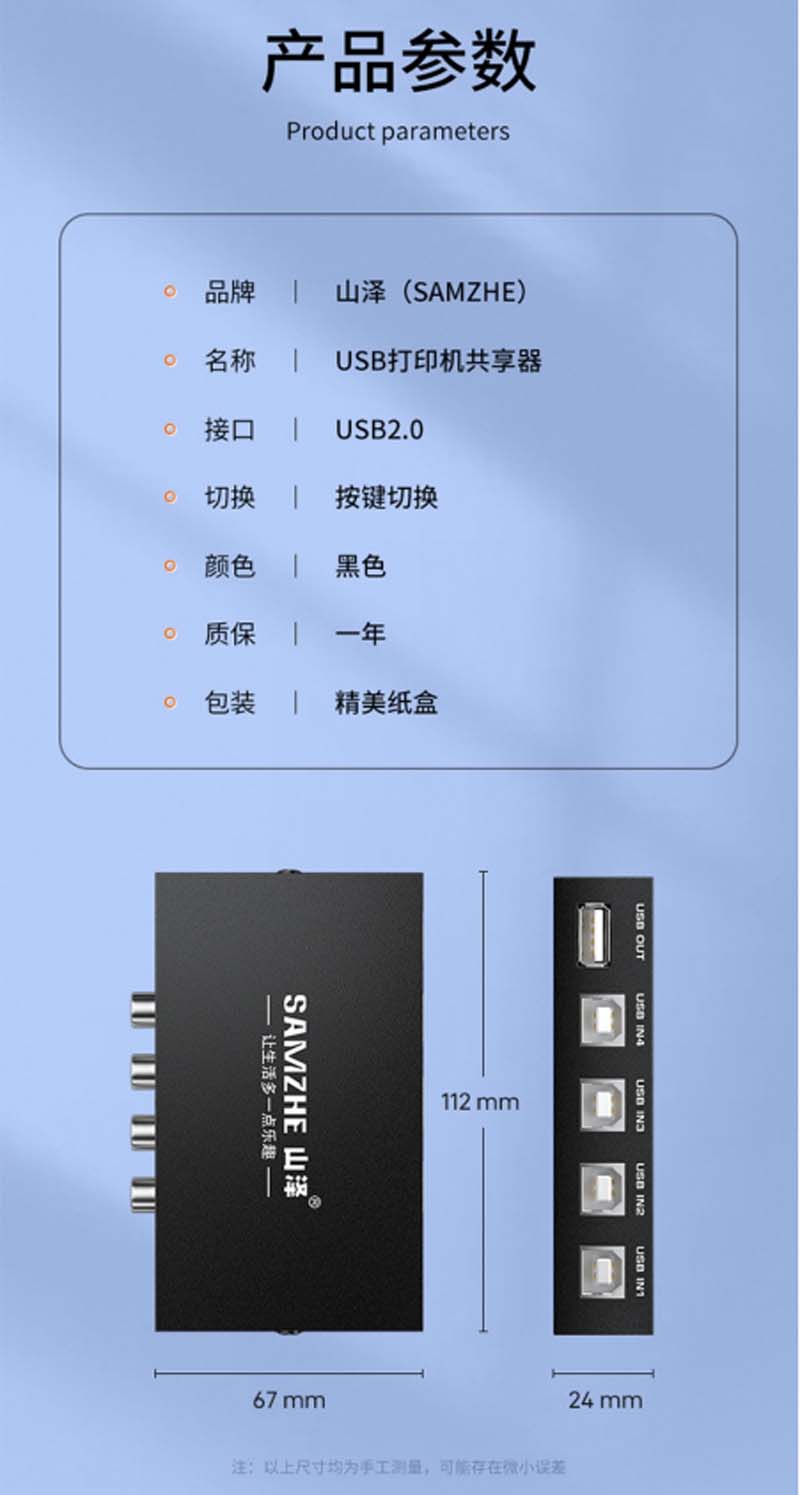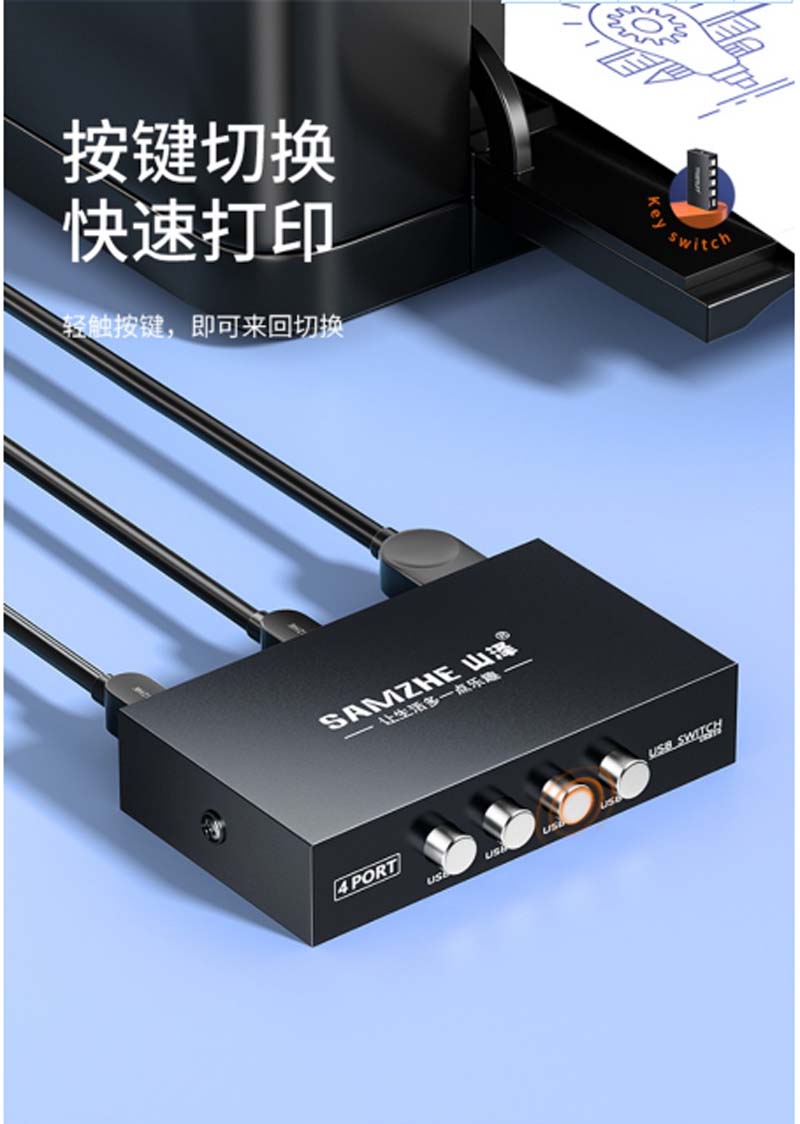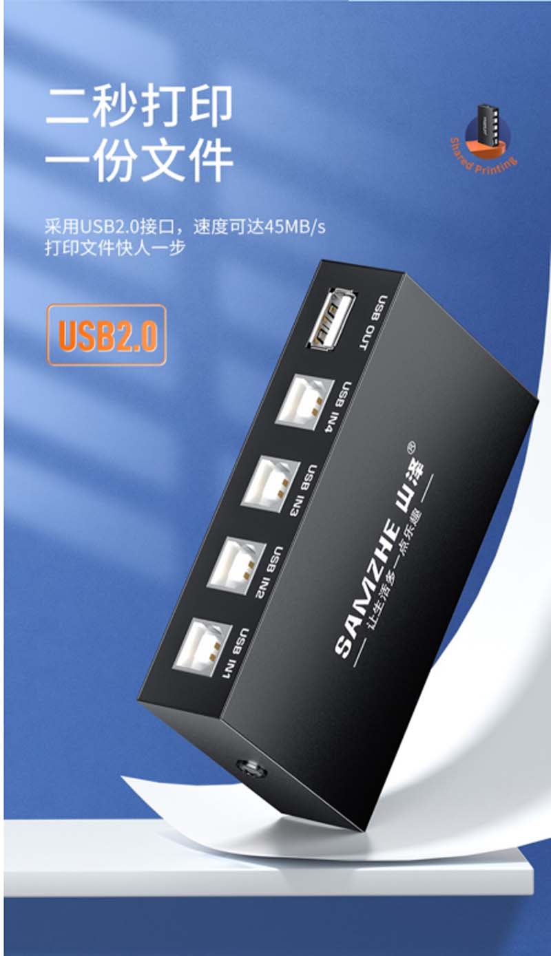 商品名称:☆山泽 SAMZHE BL-04 USB打印机共享器 四进一出4口切换器 配原装线