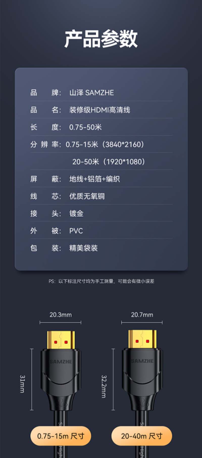 ☆山泽 SAMZHE SM-Z200 HDMI线 家装3D视频线20米