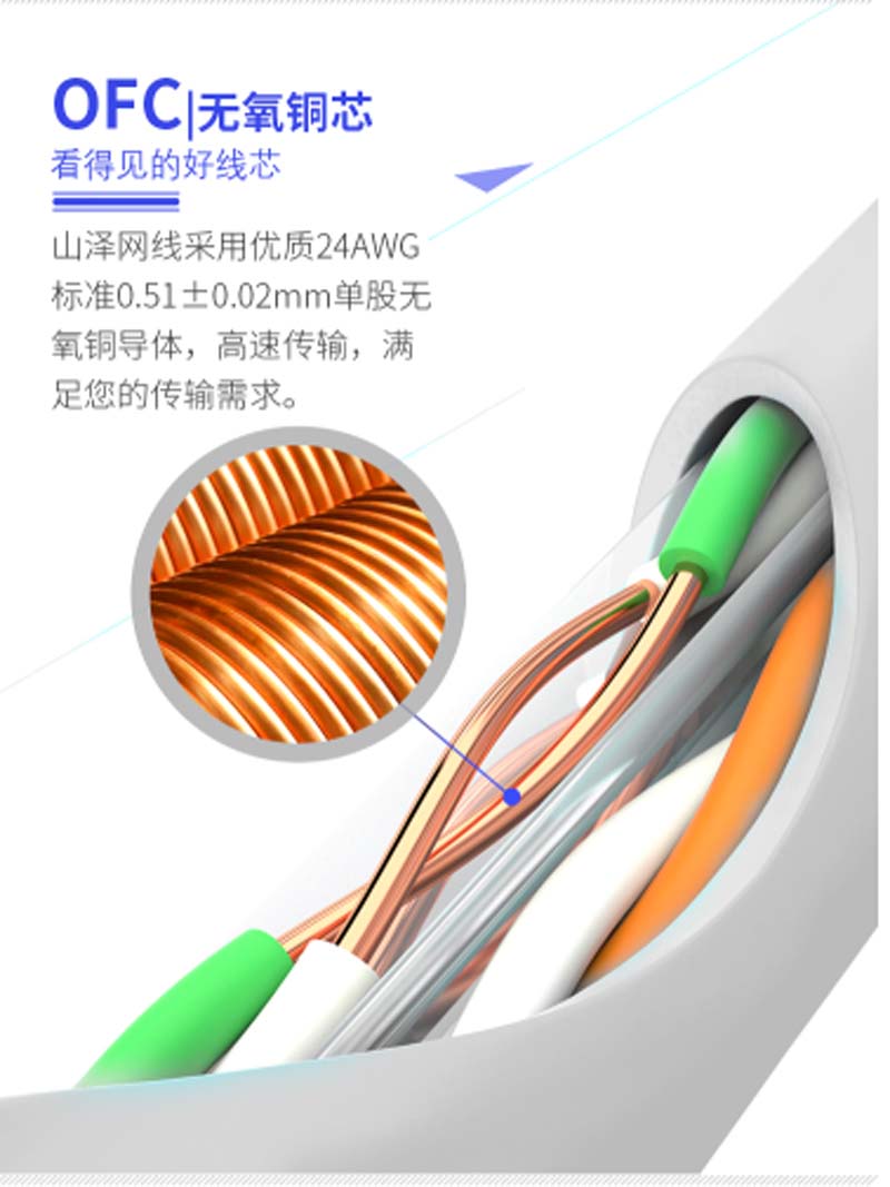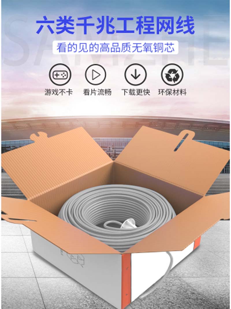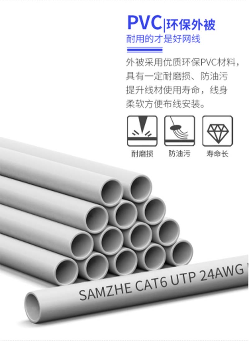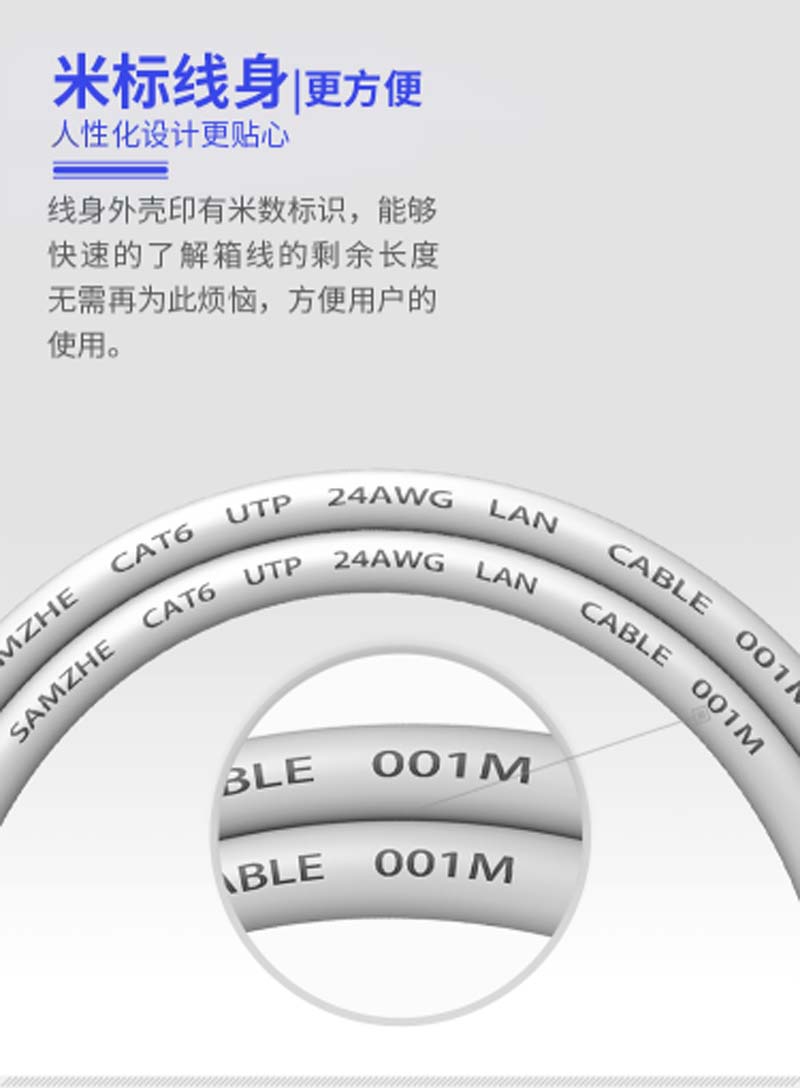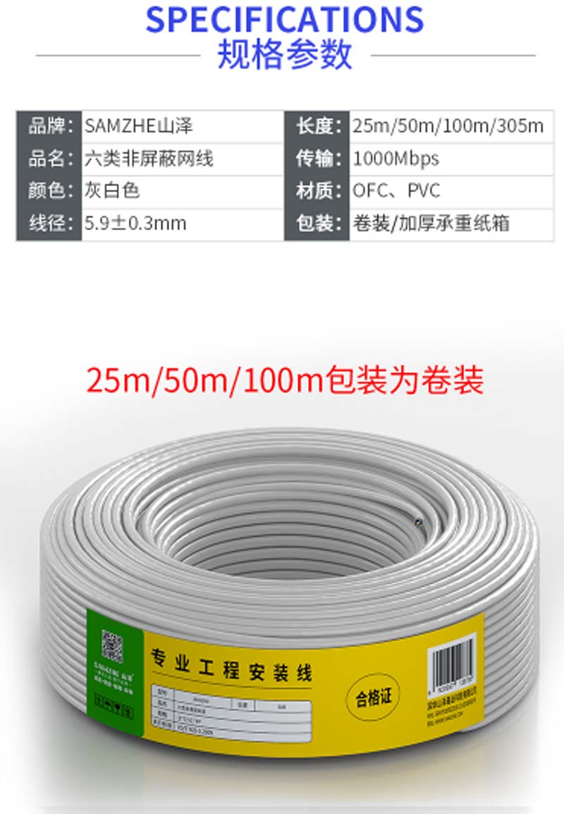 商品名称:☆山泽 SAMZHE BH6305 0.51±0.02MM CAT6类非屏蔽千兆网线 纯铜线芯 305米