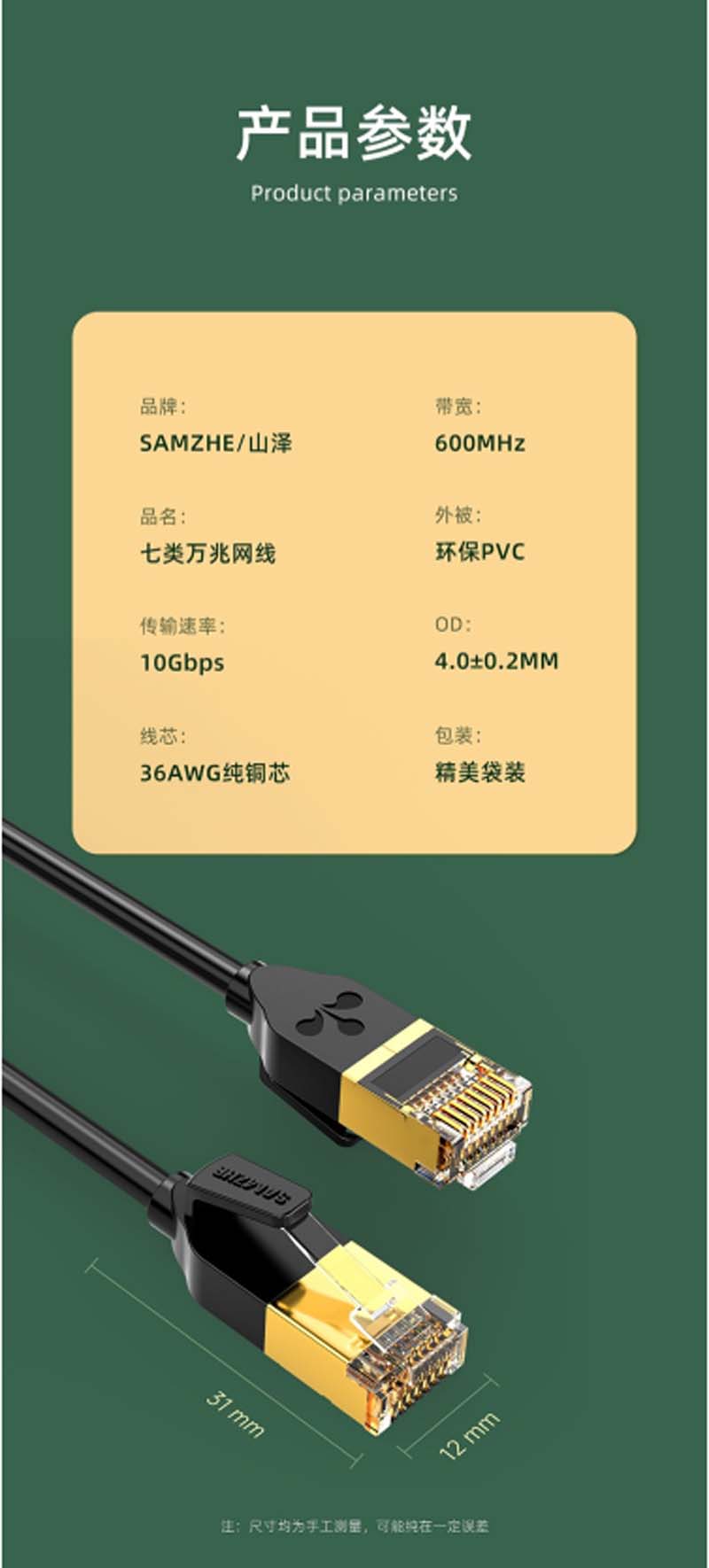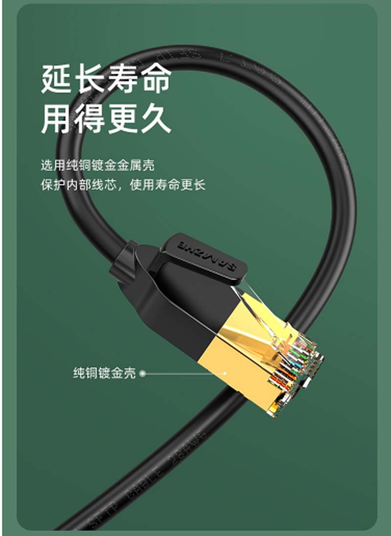 商品名称:☆山泽 SAMZHE 电脑宽带连接线 纯铜双屏蔽8芯双绞线 黑色 0.5米