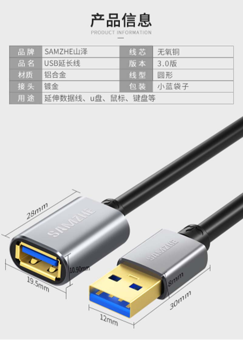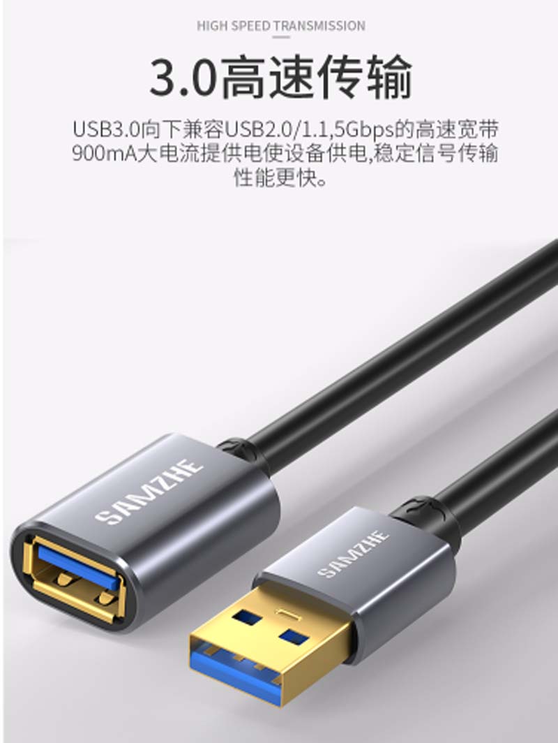商品名称:☆山泽 SAMZHE LK-50 USB延长线 USB3.0 公对母 AM/AF 铝合金黑色 5米