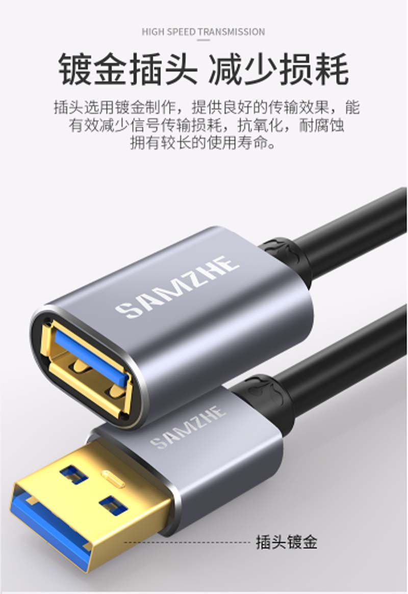 ☆山泽 SAMZHE LK-50 USB延长线 USB3.0 公对母 AM/AF 铝合金黑色 5米