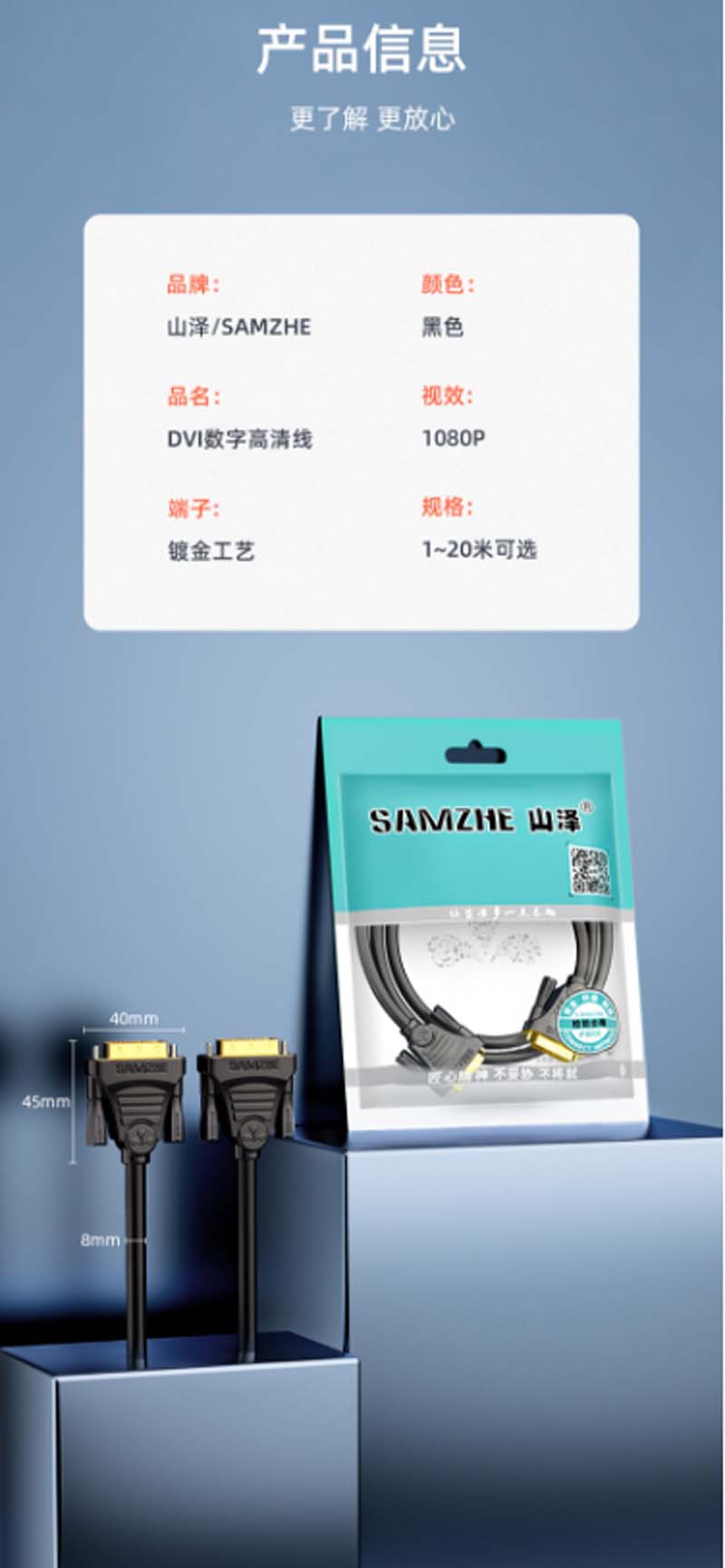 商品名称:☆山泽 SAMZHE DV-8200 20米 公对公 DVI线