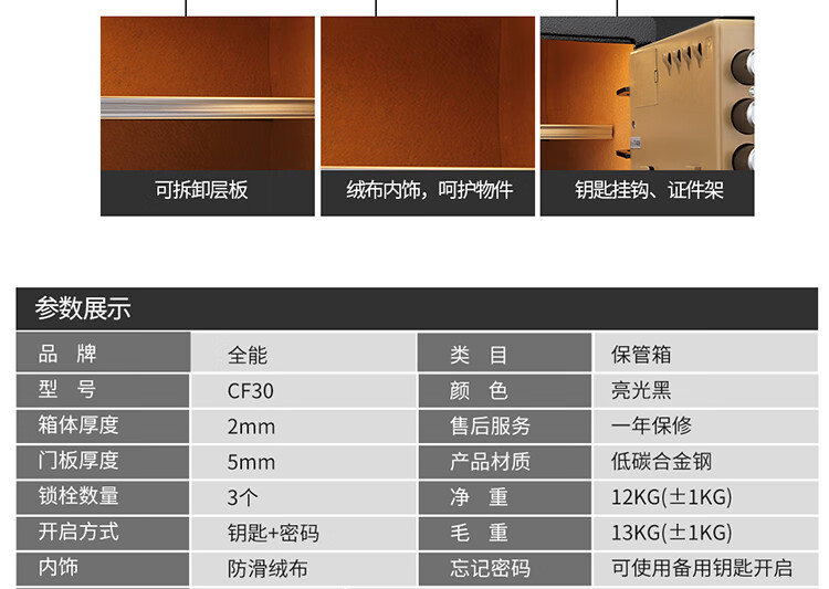 商品名称:☆全能 QNN CF30 电子密码保管箱