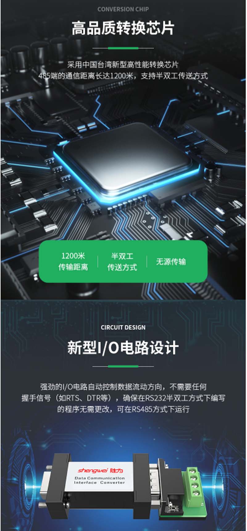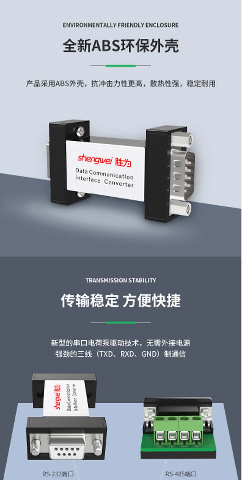 ☆胜为 SHENGWEI DCP-1105 RS232转RS485袖珍型通信协议转换器 无源 232转485转换器