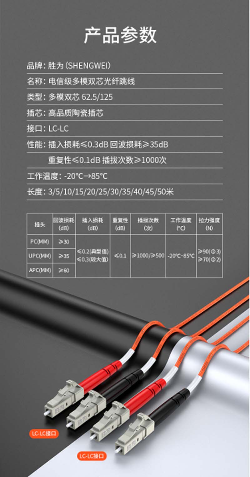 商品名称:☆胜为 SHENGWEI FMC-204 光纤跳线 电信级 LC-LC多模双芯 收发器尾纤 3米