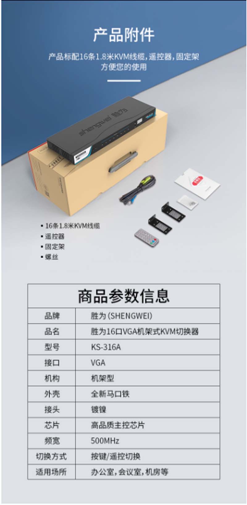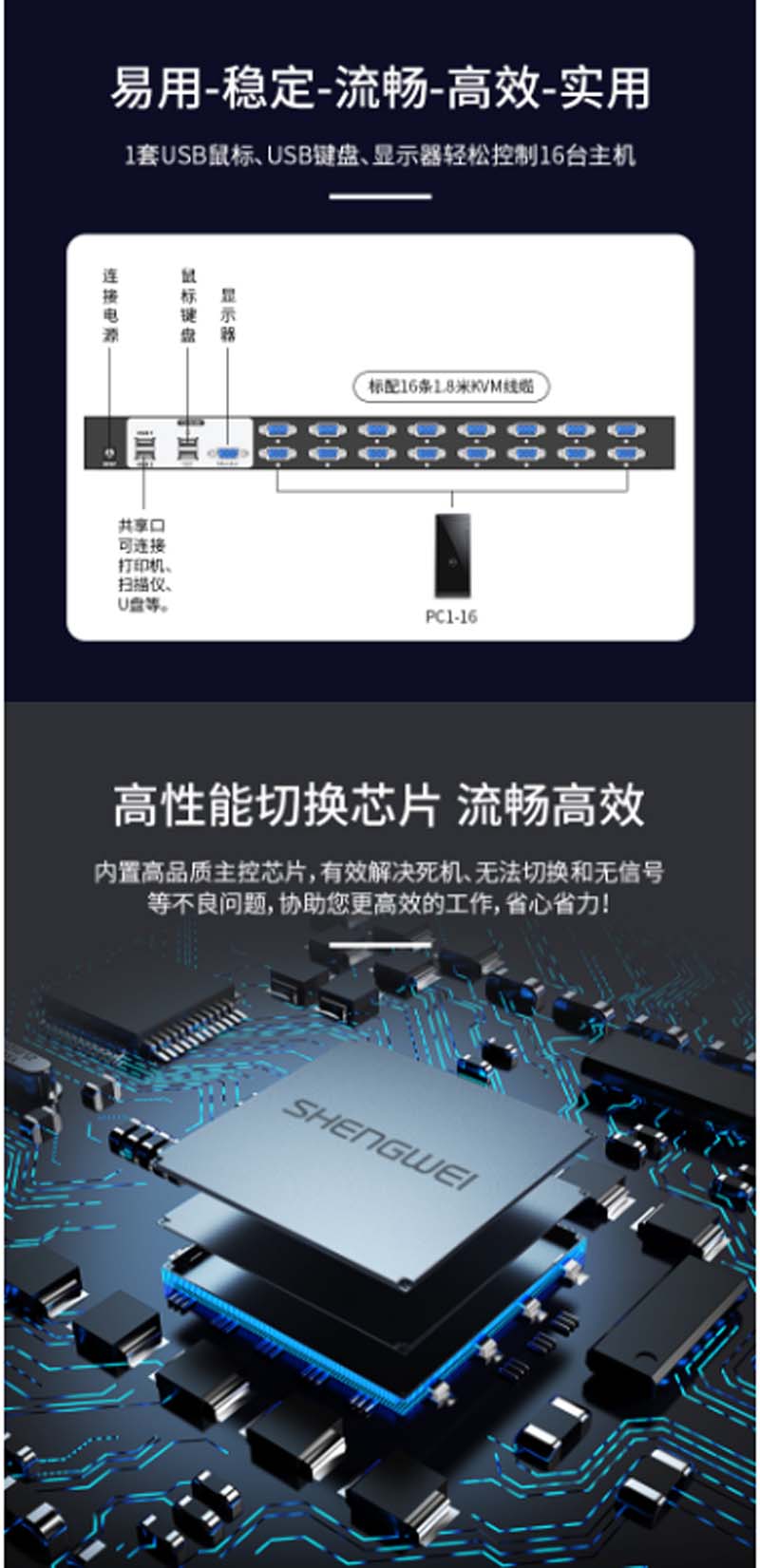 ☆胜为 SHENGWEI KS-316A KVM切换器 机架式 16口 配16组线