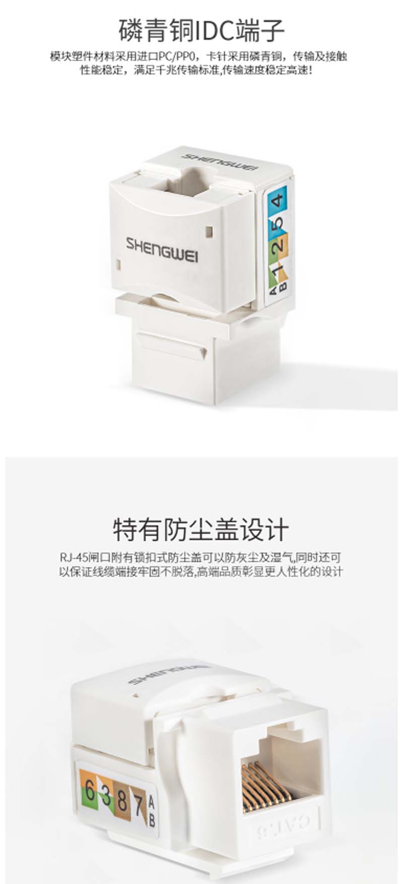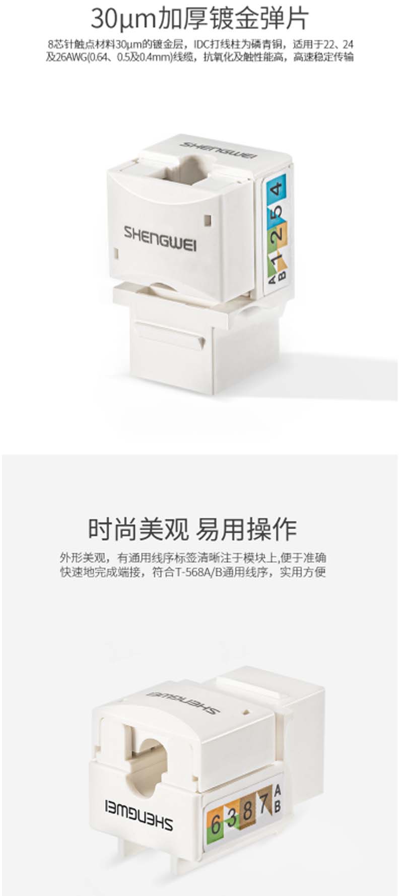 ☆胜为 SHENGWEI SIM-501 超五类网络信息模块 工程级镀金 CAT5E模块 超五类非屏蔽RJ45模块