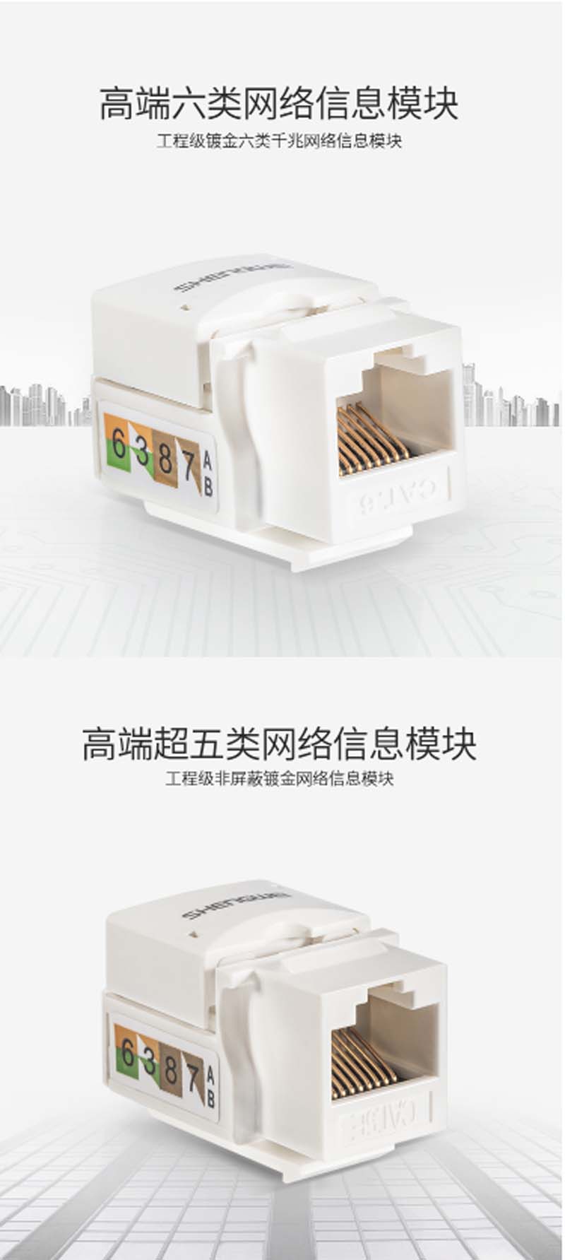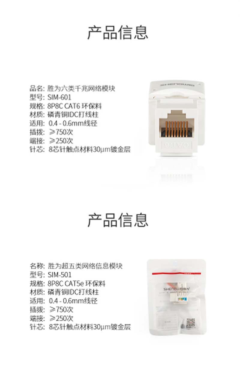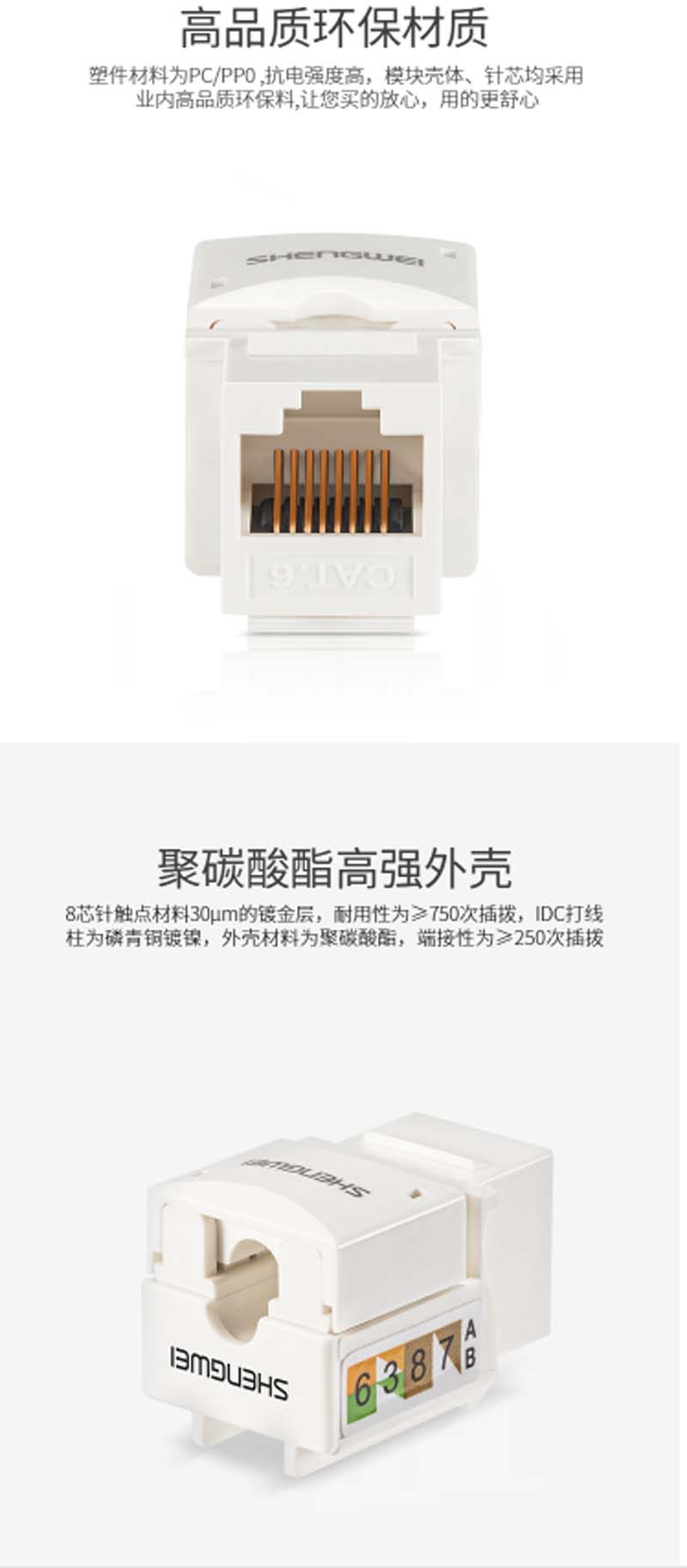 商品名称:☆胜为 SHENGWEI SIM-501 超五类网络信息模块 工程级镀金 CAT5E模块 超五类非屏蔽RJ45模块