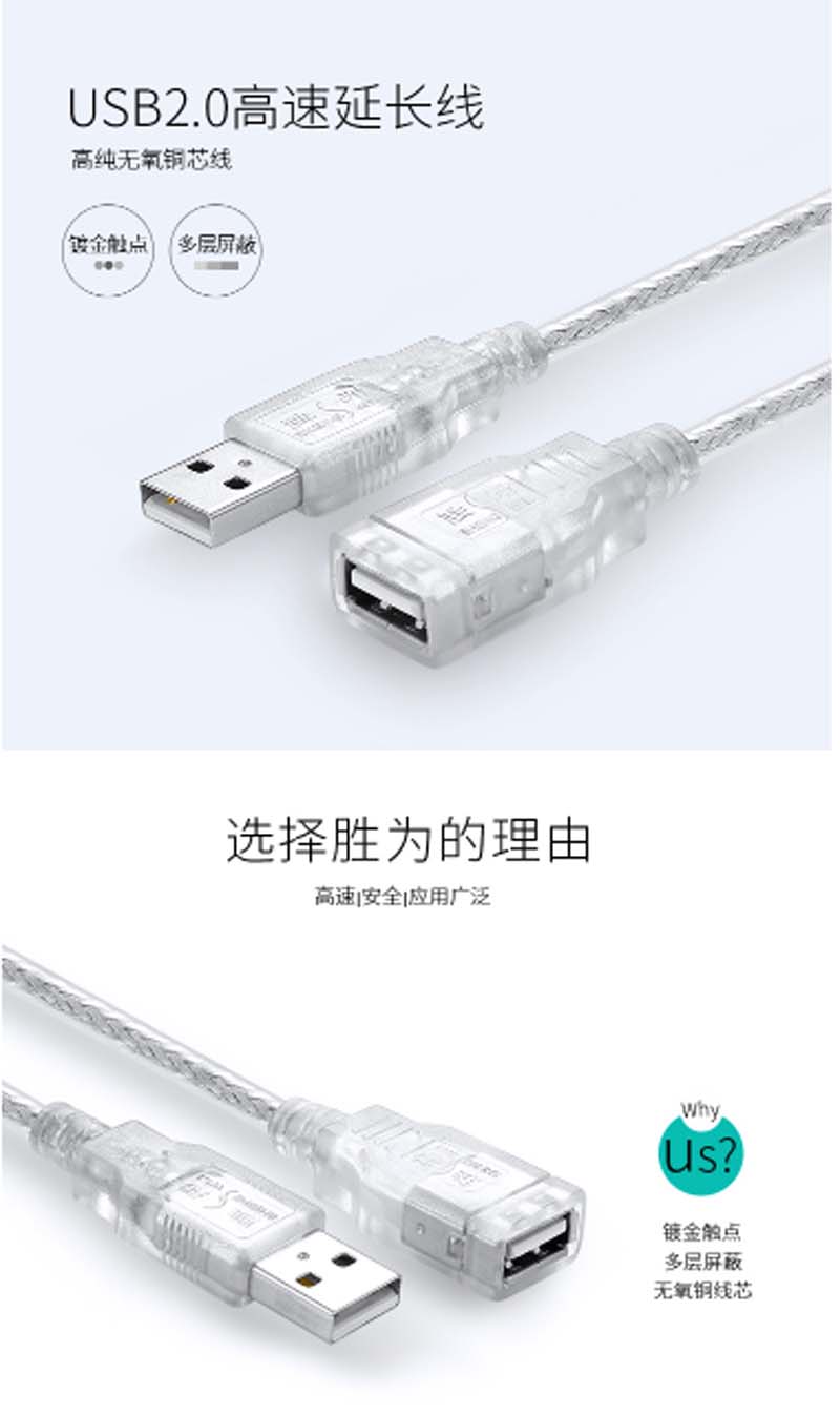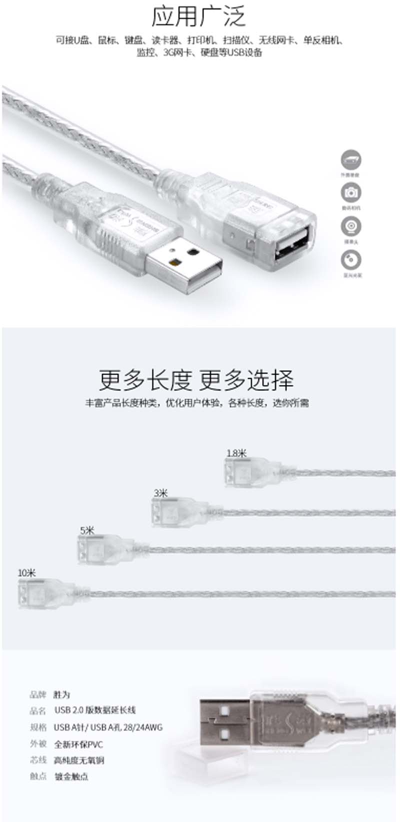 商品名称:☆胜为 SHENGWEI UC-2050 高速USB延长线 AM/AF 5米 公对母电脑USB加长线/延长线 USB2.0数据连接线