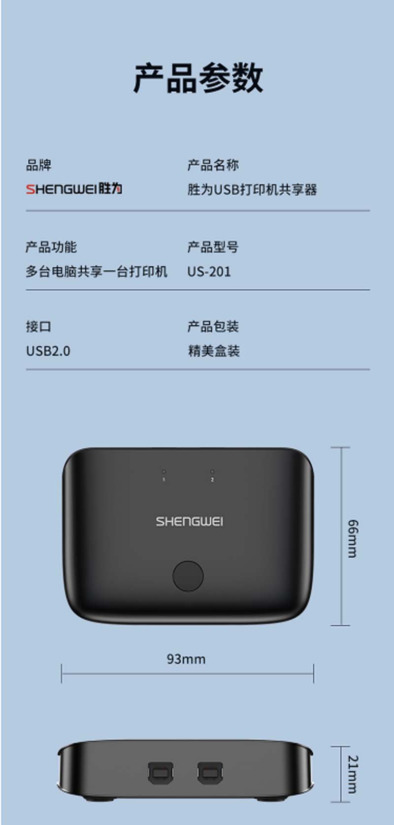 商品名称:☆胜为 SHENGWEI US-201 USB共享器 2口 配原装线 USB手动自动切换器 多台电脑共用打印机 二进一出