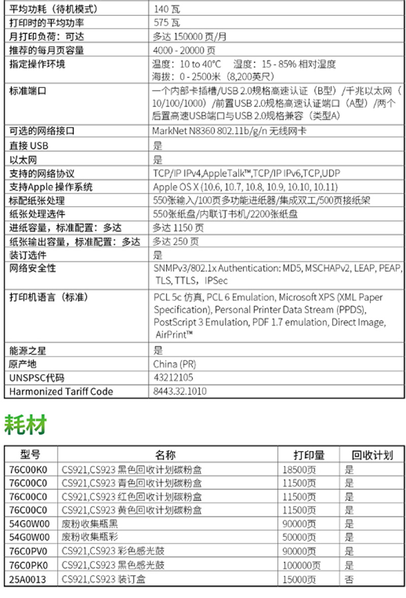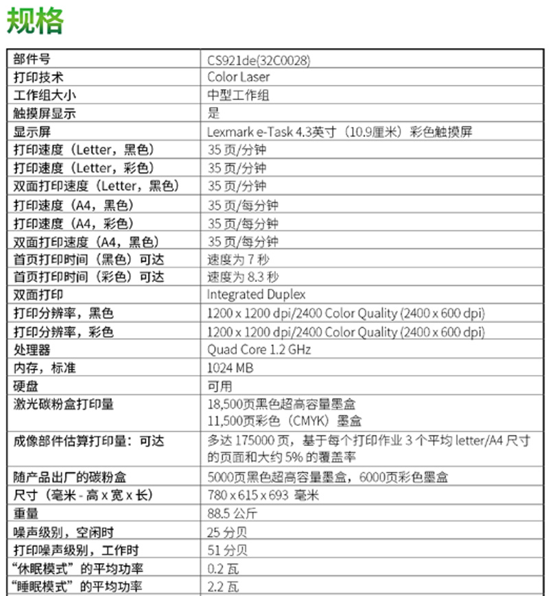 商品名称:☆利盟(LEXMARK) CS921DE 激光打印机 (1年)