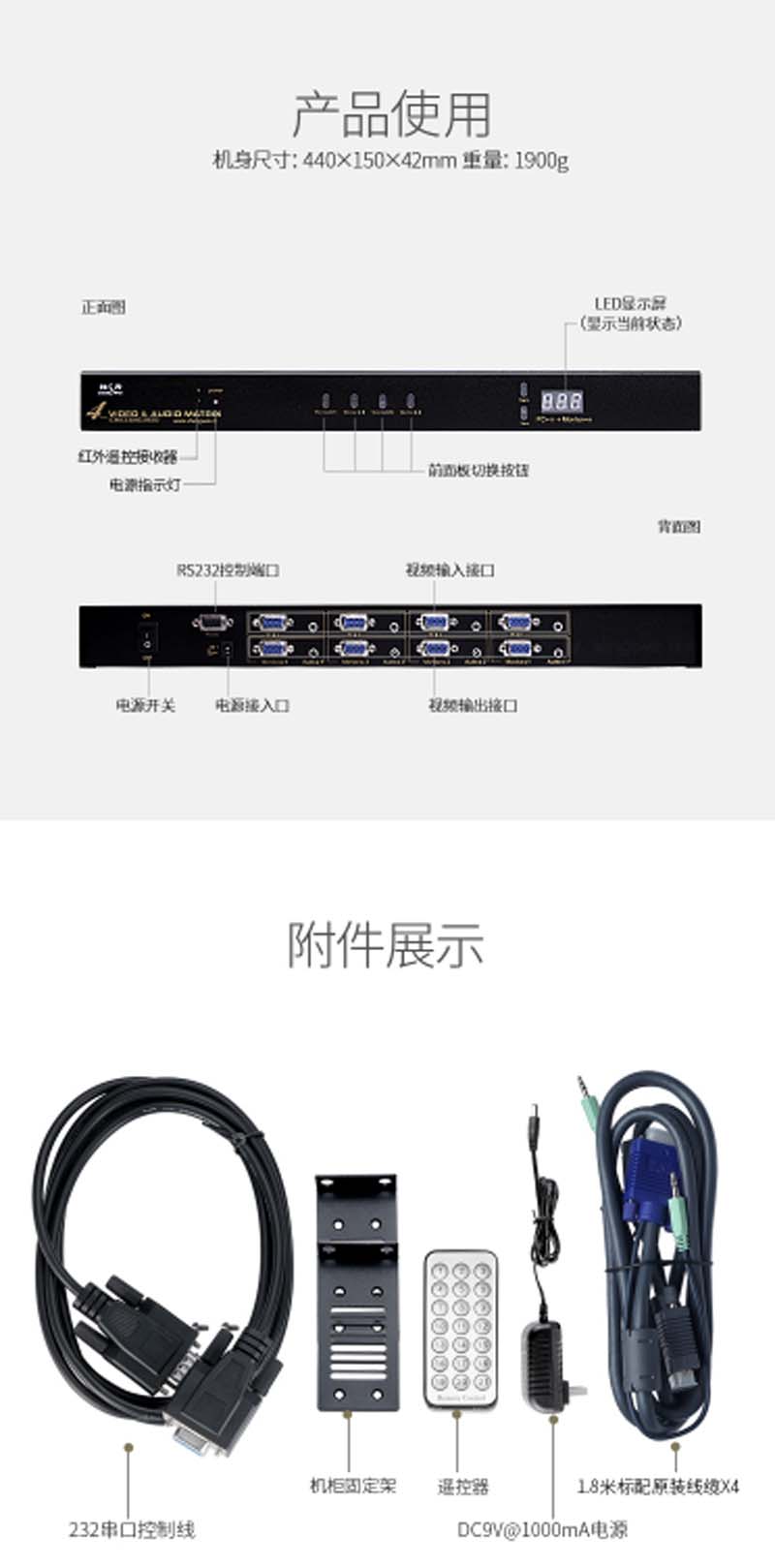 商品名称:☆胜为 SHENGWEI VM-544 VGA四进四出音视频矩阵 配线 带遥控 500MHZ 4进4出高清VGA矩阵 VGA切换分配器