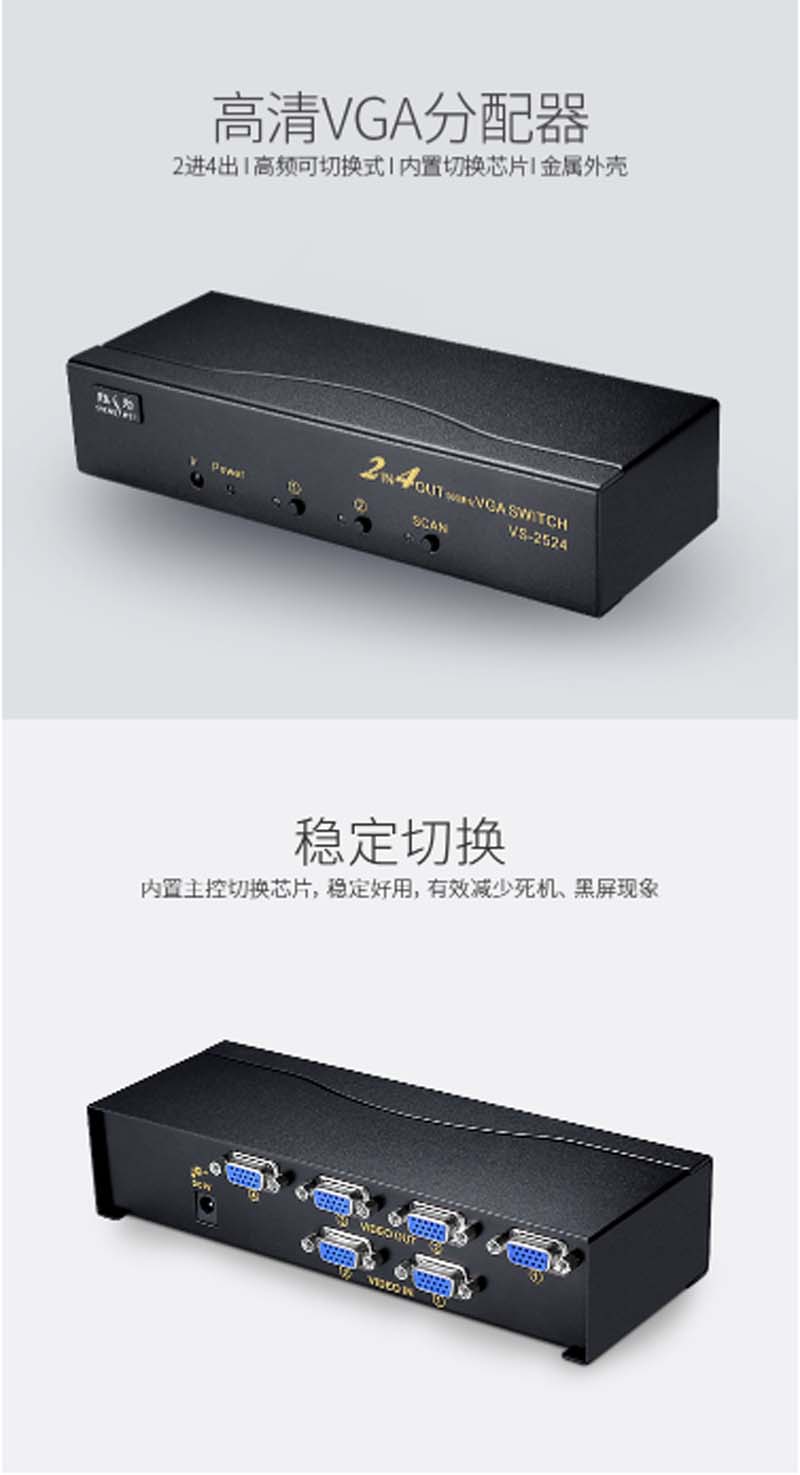 ☆胜为 SHENGWEI VS-2524 VGA二进四出切换器 带遥控 2进4出视频分配器共享器 高清显示器共享器