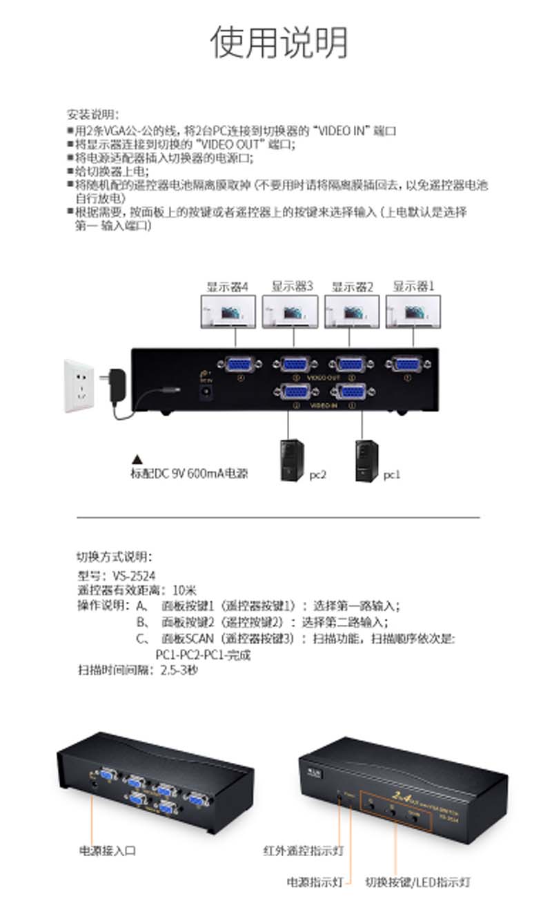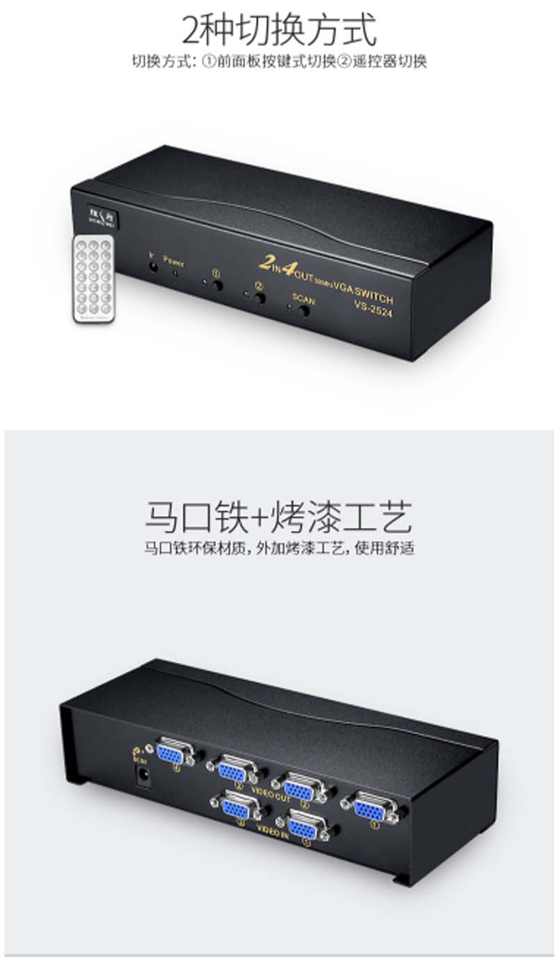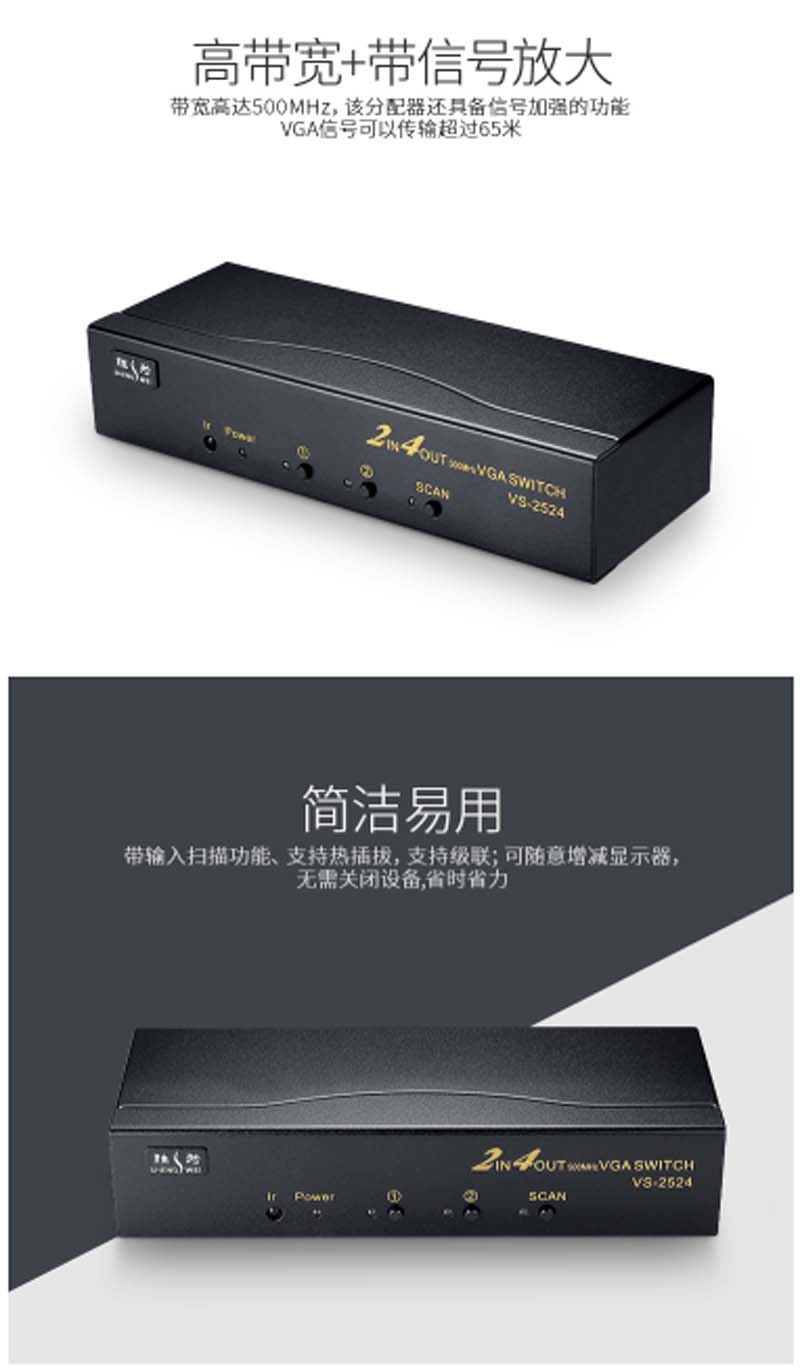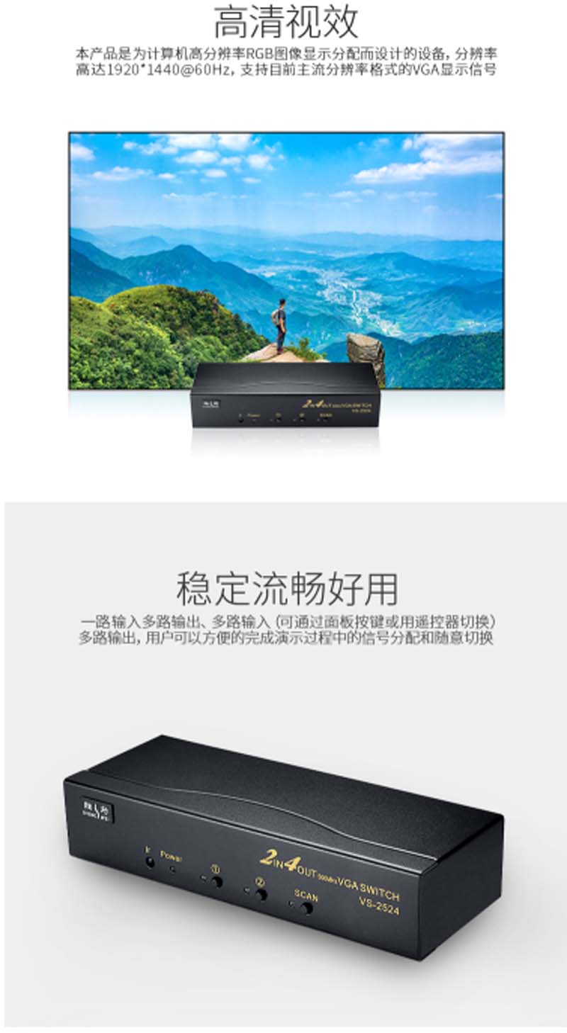 商品名称:☆胜为 SHENGWEI VS-2524 VGA二进四出切换器 带遥控 2进4出视频分配器共享器 高清显示器共享器