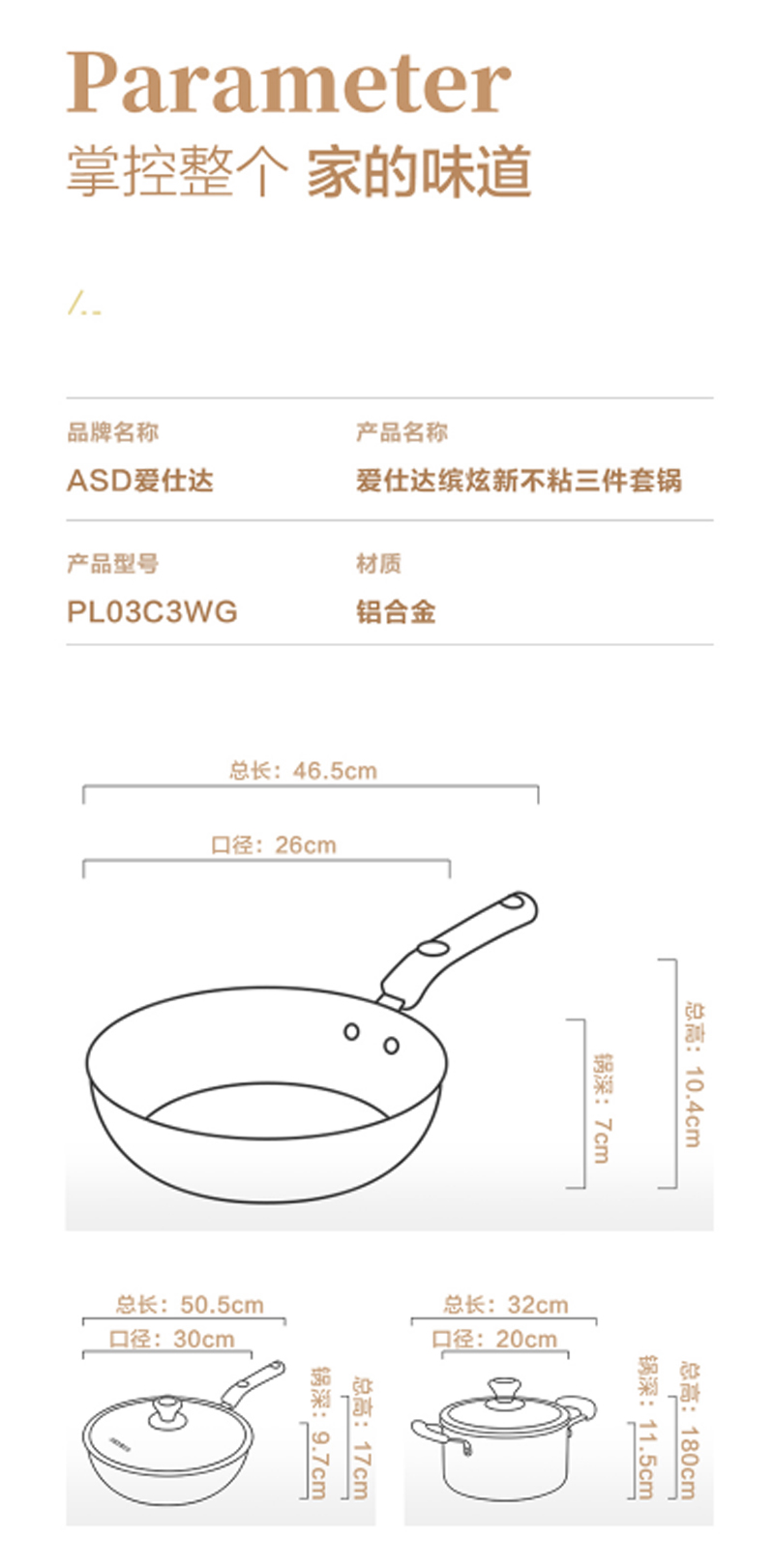 商品名称:☆爱仕达 烹饪锅具 锅具三件套(约30CM炒锅 约24cm煎锅 约20cm汤锅)