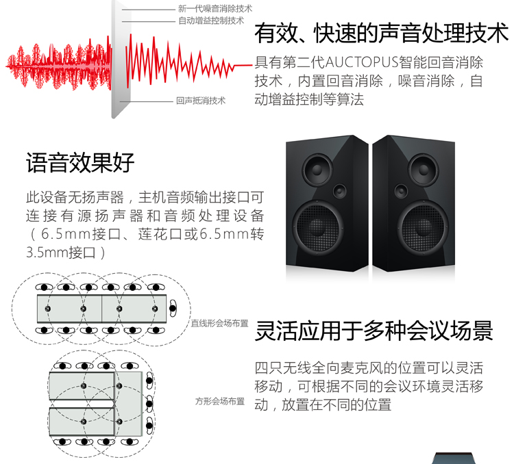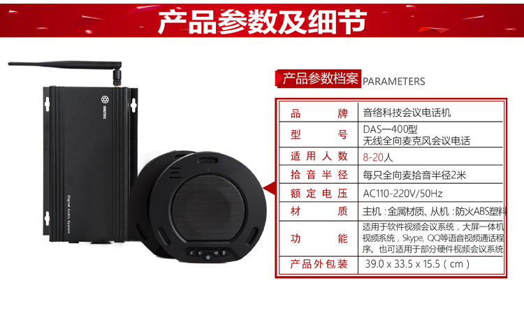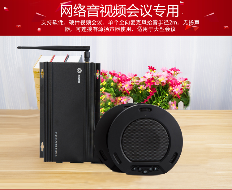 商品名称:☆音络 INNOTRIK 视频会议全向麦克风 DAS-400 两麦克风无线级联 可外接音箱调音台