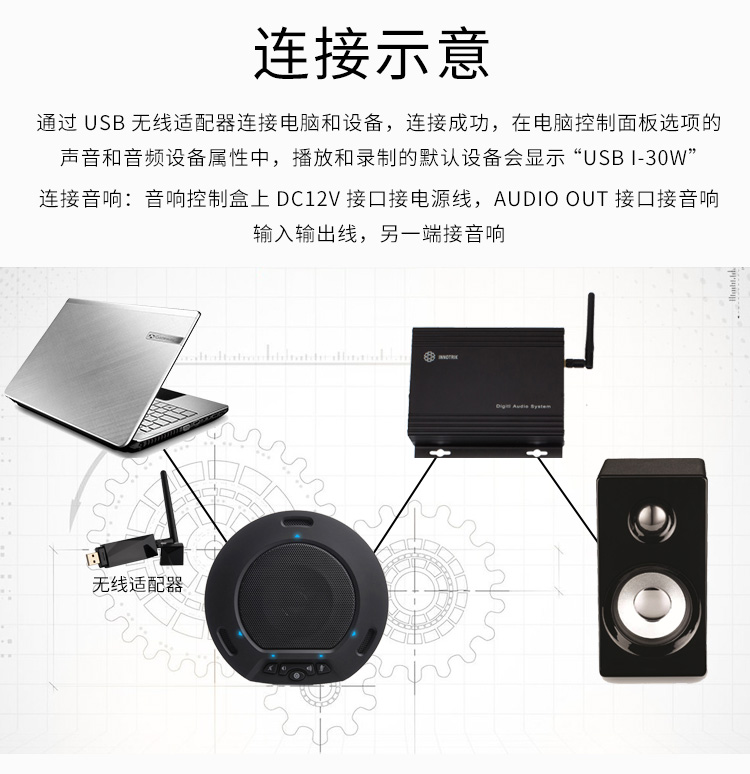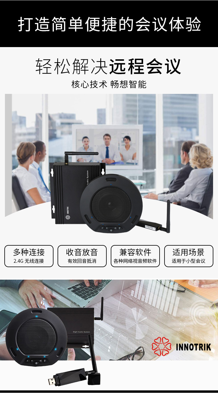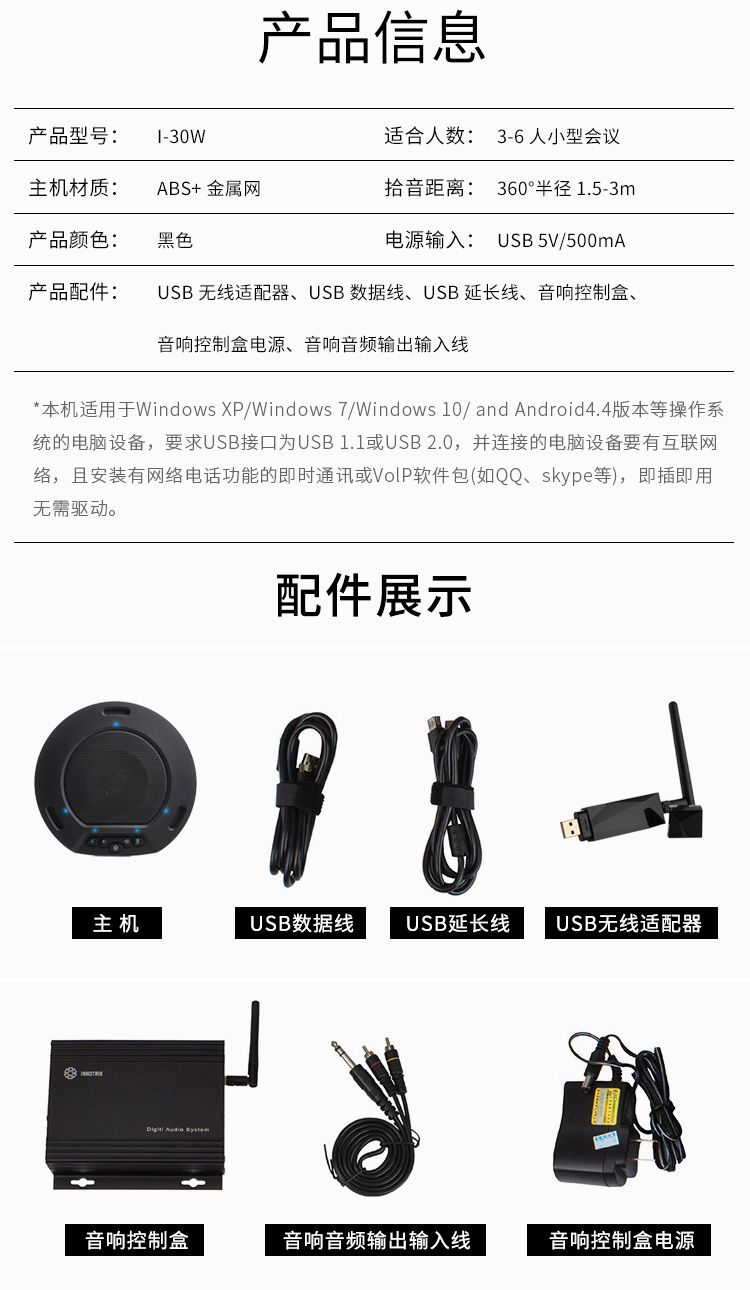 商品名称:☆音络 INNOTRIK 视频会议全向麦克风 I-30W 无线接电脑可外接音箱/调音台高清会议软件系统终端扬声器设备