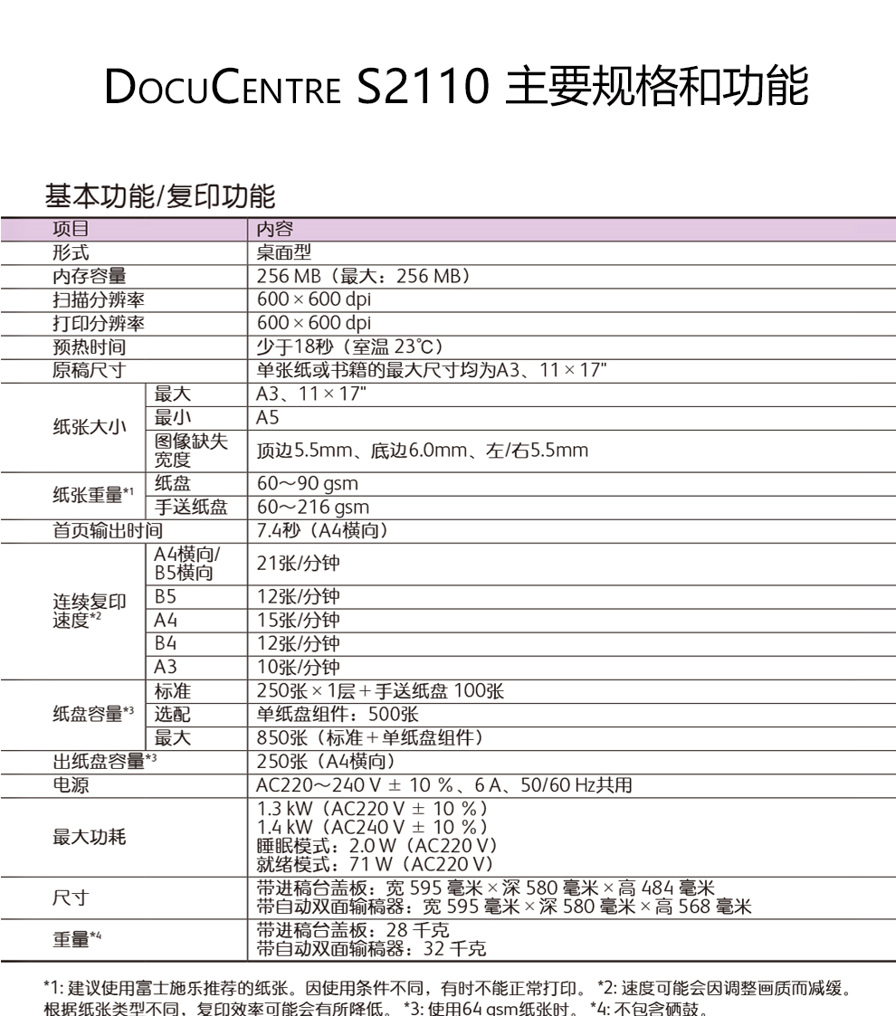 商品名称:☆富士施乐(FUJI XEROX) S2011N (双面器/双面自动输稿器/有线网络打印/250页) 复印机