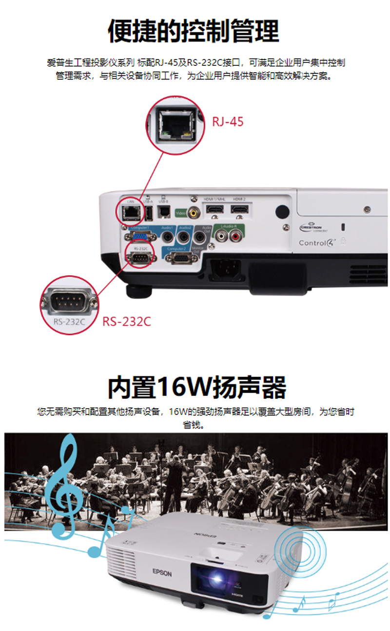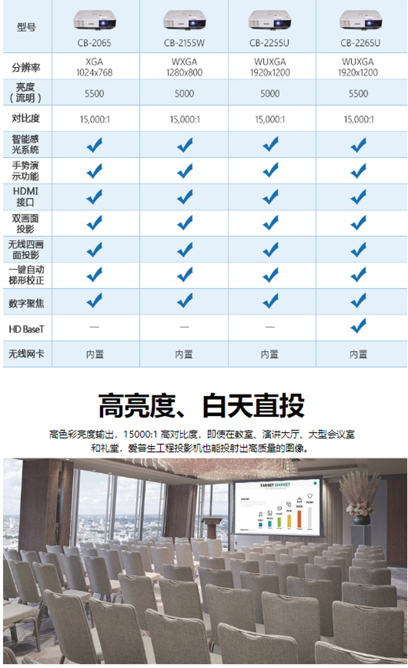 ☆爱普生(EPSON) CB-2155W 投影机 (含120英寸电动幕布)