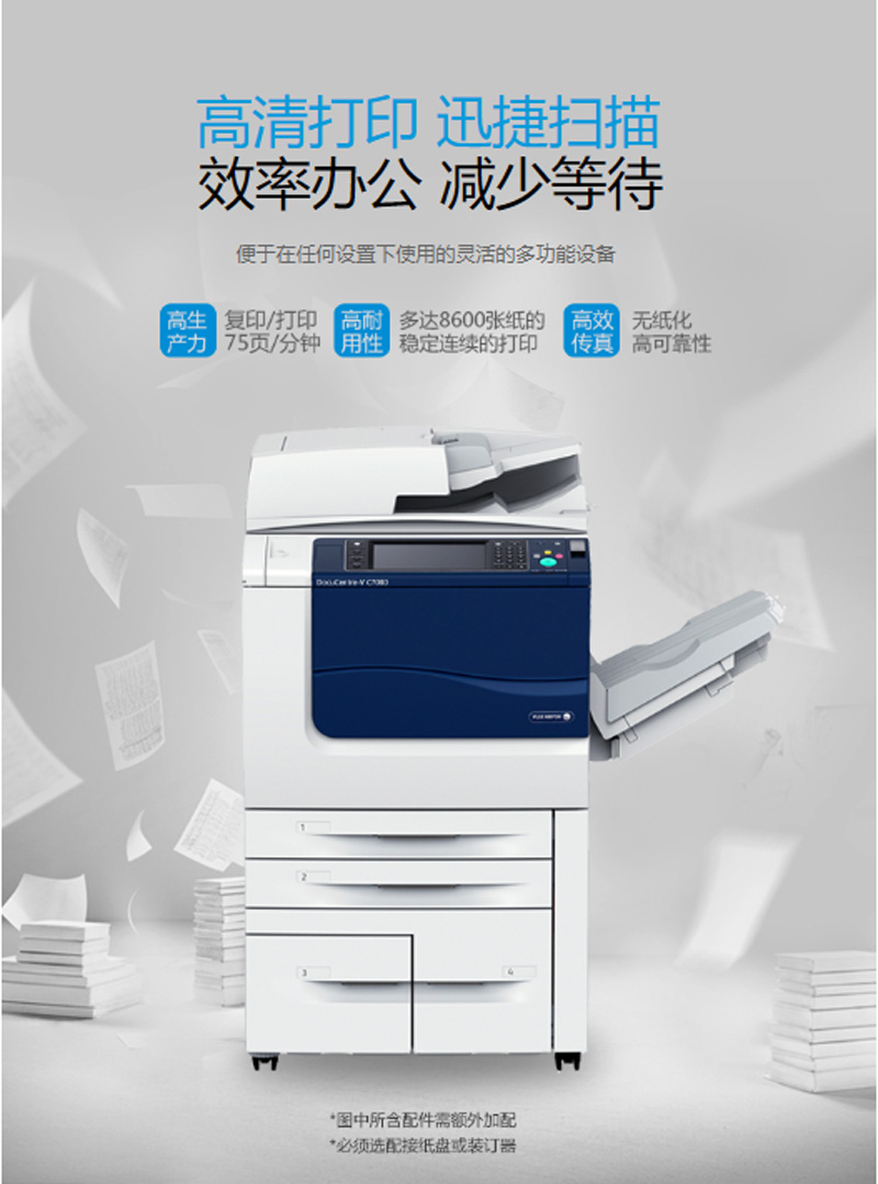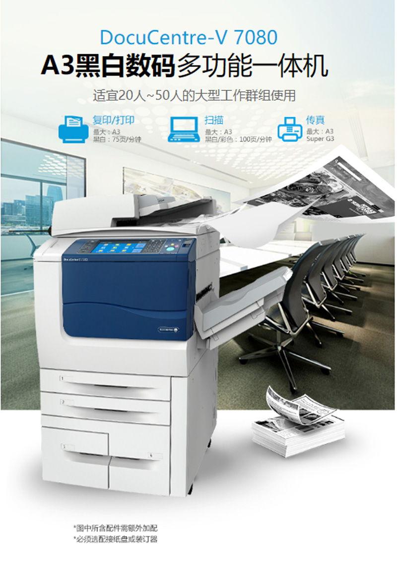 商品名称:☆富士施乐(FUJI XEROX) 7080CP (双面器/双面自动输稿器/有线网络打印/4450页) 复印机 (含扫描组件、C3型骑马装订器)