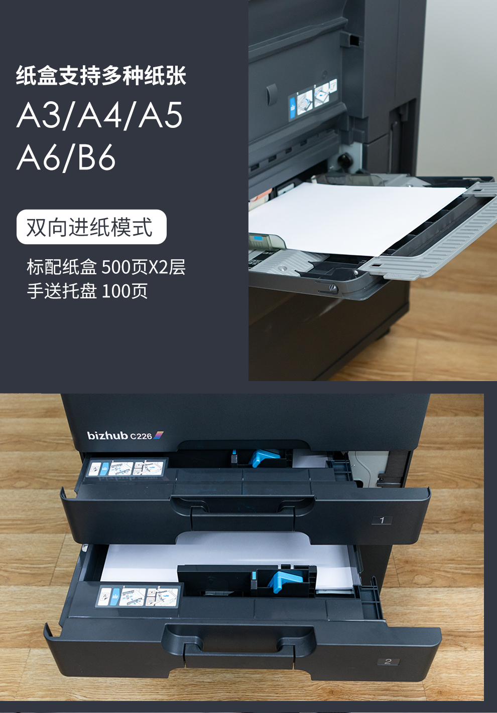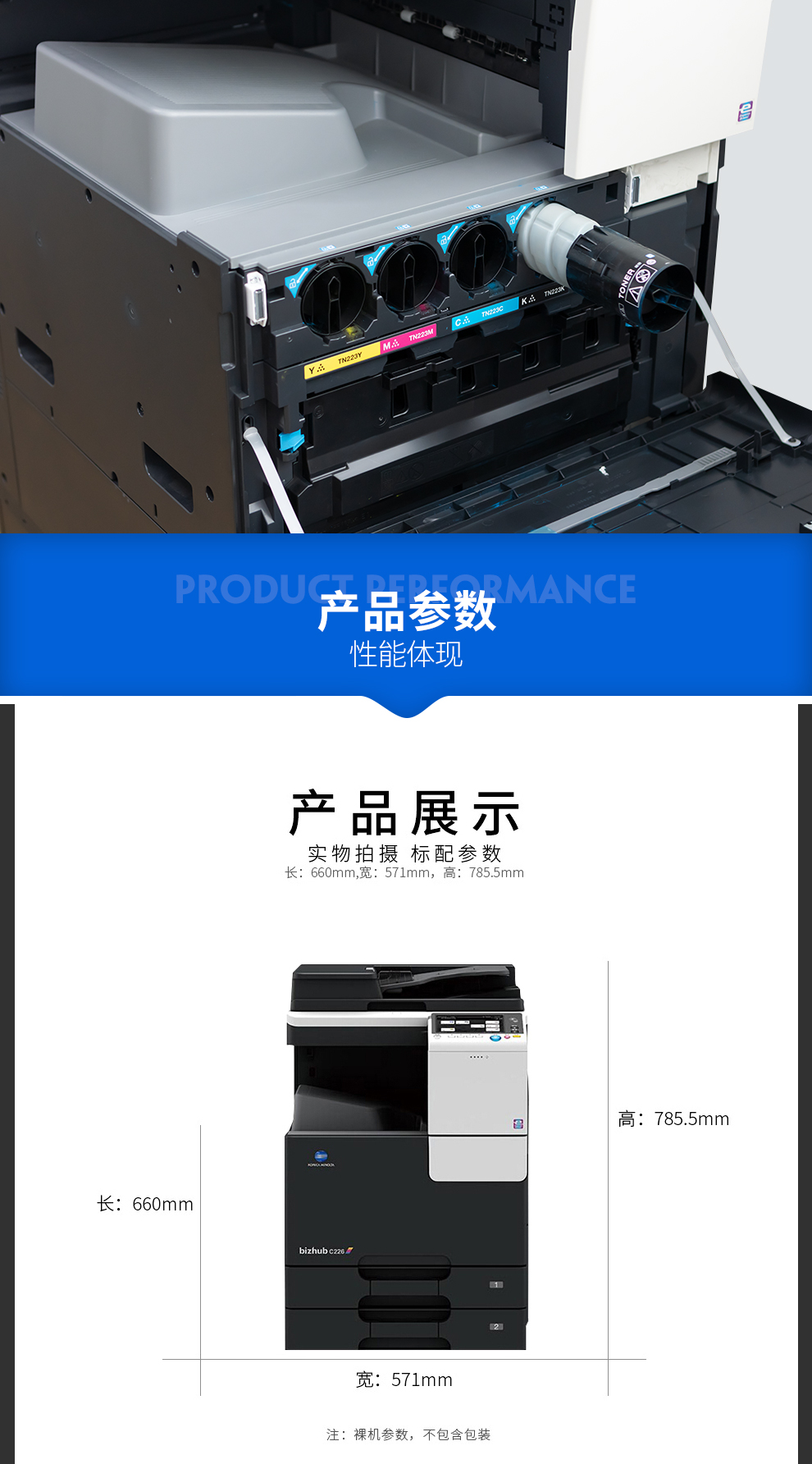 商品名称:☆柯尼卡美能达(KONICA MINOLTA) C226 (双面器/双面自动输稿器/有线网络打印/1000页) 复印机 (工作台)