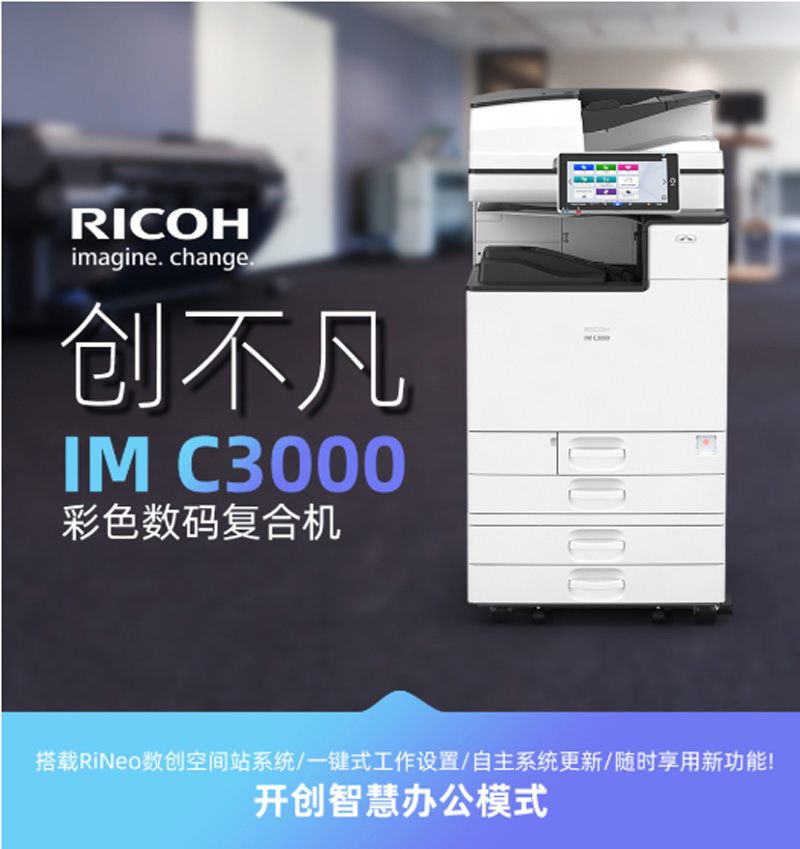 ☆理光(RICOH) C3000 (双面器/双面自动输稿器/有线网络打印/1200页) 复印机 (内置装订器)