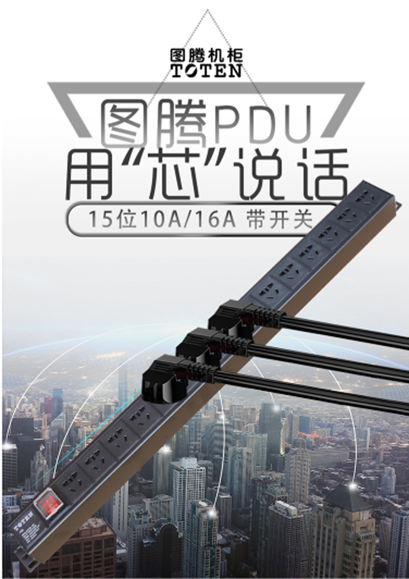 ☆图腾 TOTEN 国标15位PDU机柜插座 16A工业插排连接器 线长3M