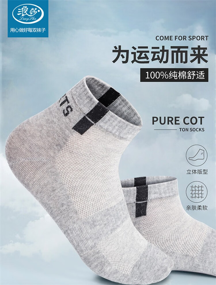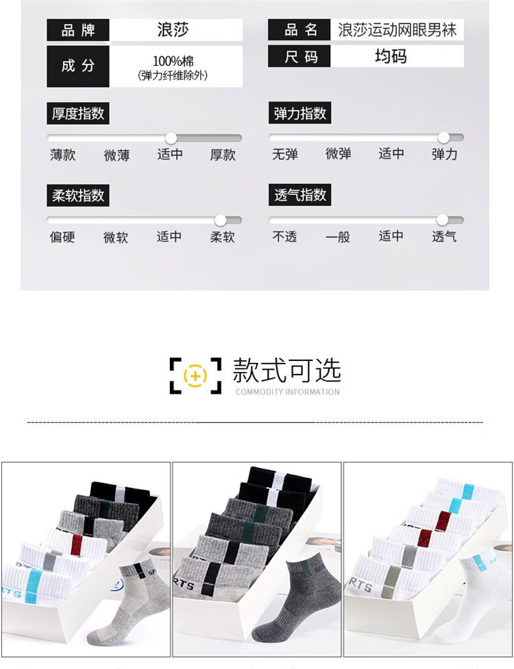 商品名称:☆浪莎 LANGSHA 纯棉短袜 男士 黑色 均码 6双