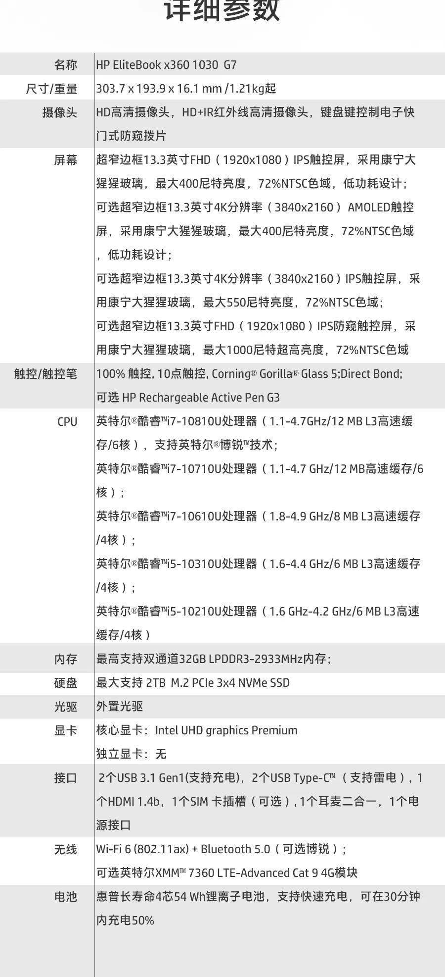 商品名称:☆惠普(HP) ELITEBOOK X360 1030G7 (I5-10210U/16GB/1TB SSD/集成显卡/WIN10HB/1年) 笔记本