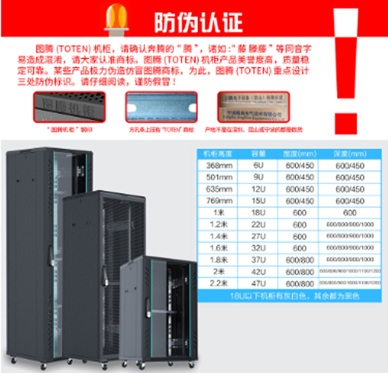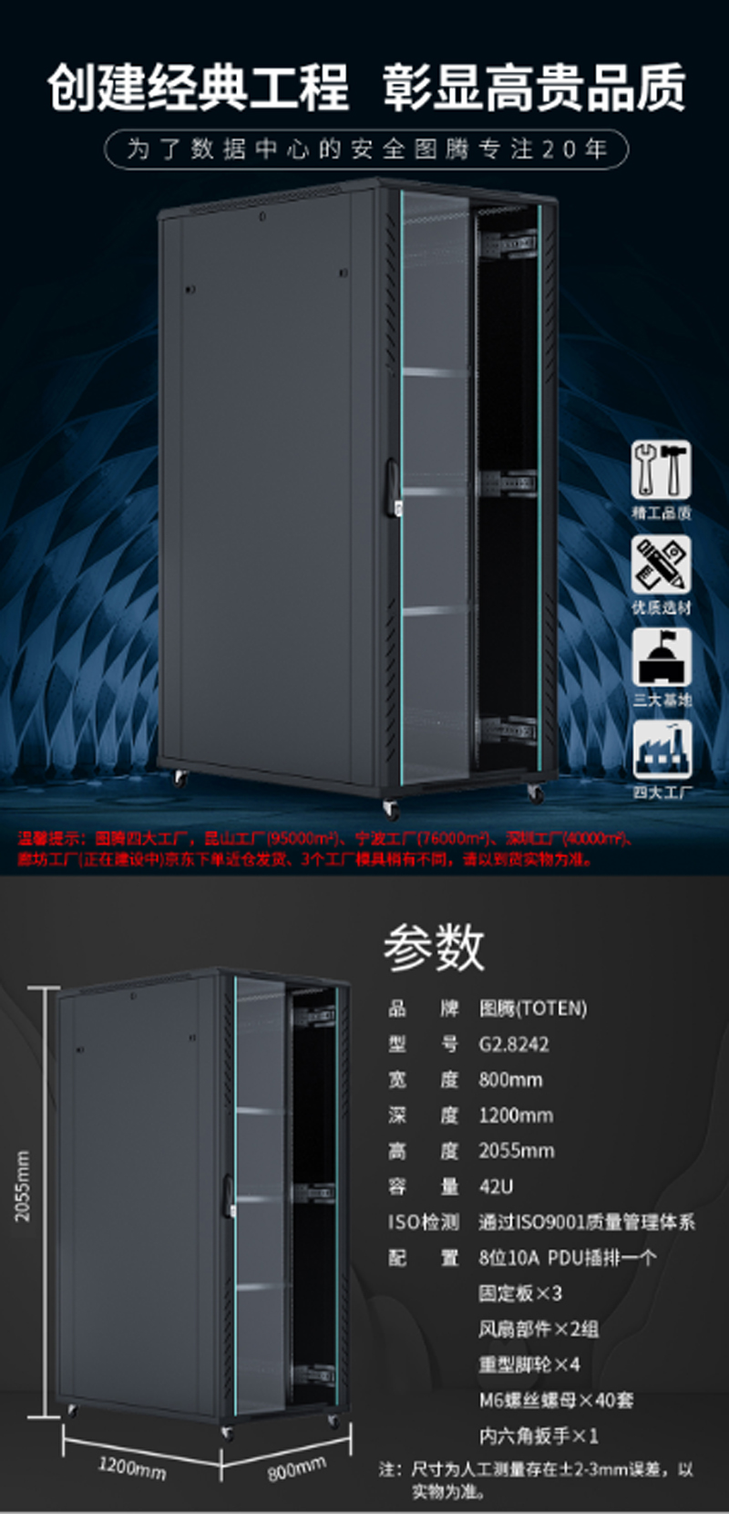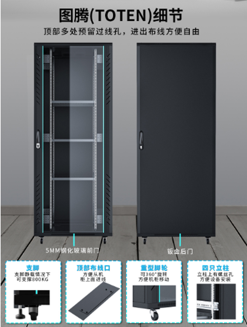 商品名称:☆图腾 TOTEN G2.8242 服务器机柜 19英寸 黑色 2米