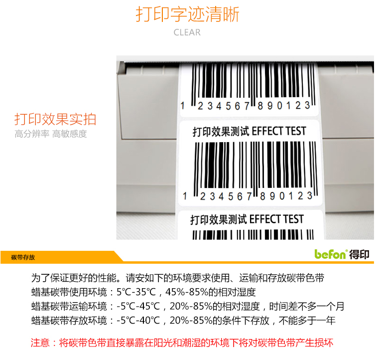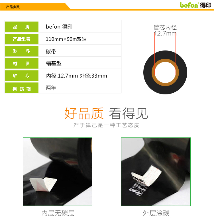 商品名称:☆得印 BEFON BF-001碳带 50支装 110MM*90M双轴碳带 条码打印机专用色带