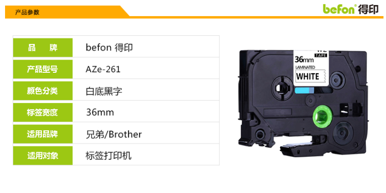商品名称:☆得印 BEFON 标签机色带36MMAZE-261 白底黑字 不干胶标签纸