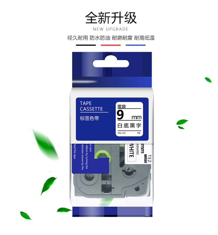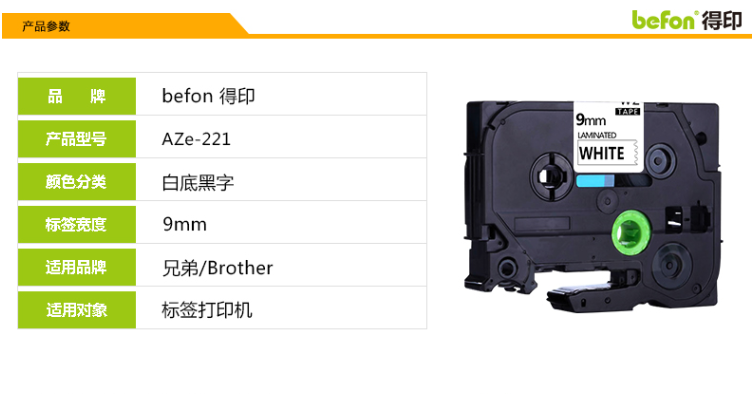 商品名称:☆得印 BEFON 标签机色带9MMAZE-221 白底黑字 不干胶标签纸