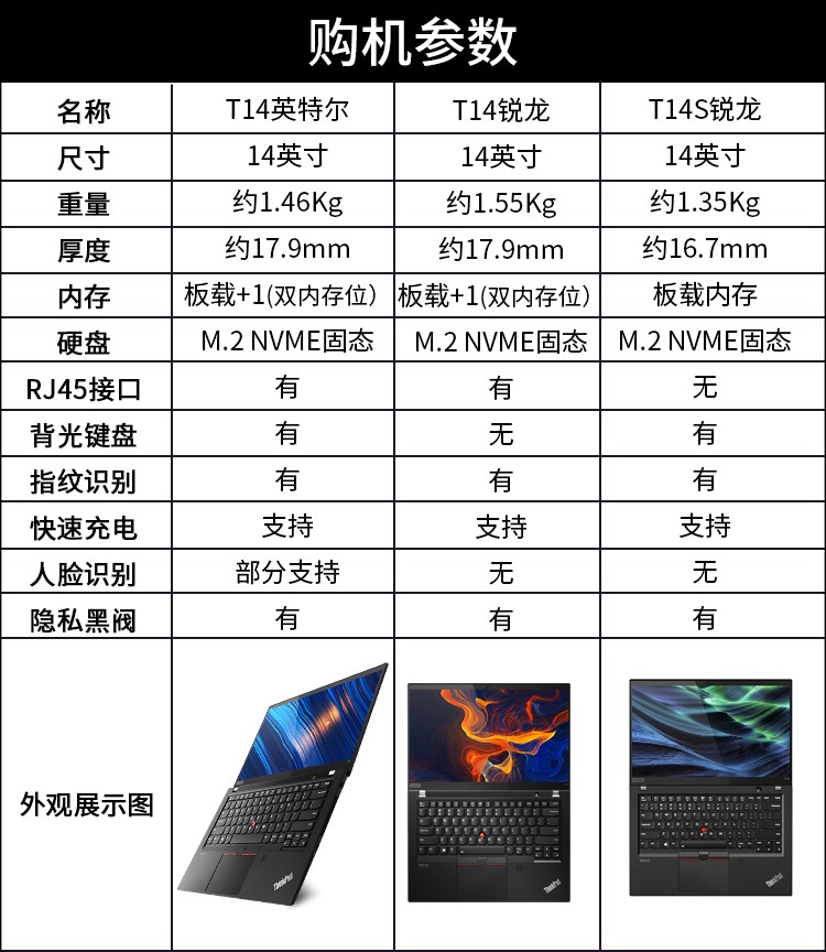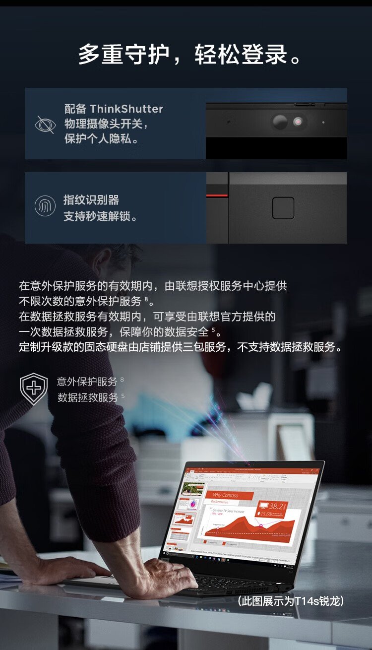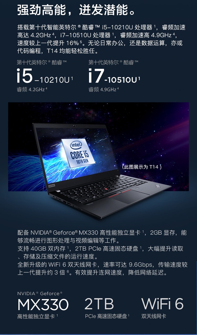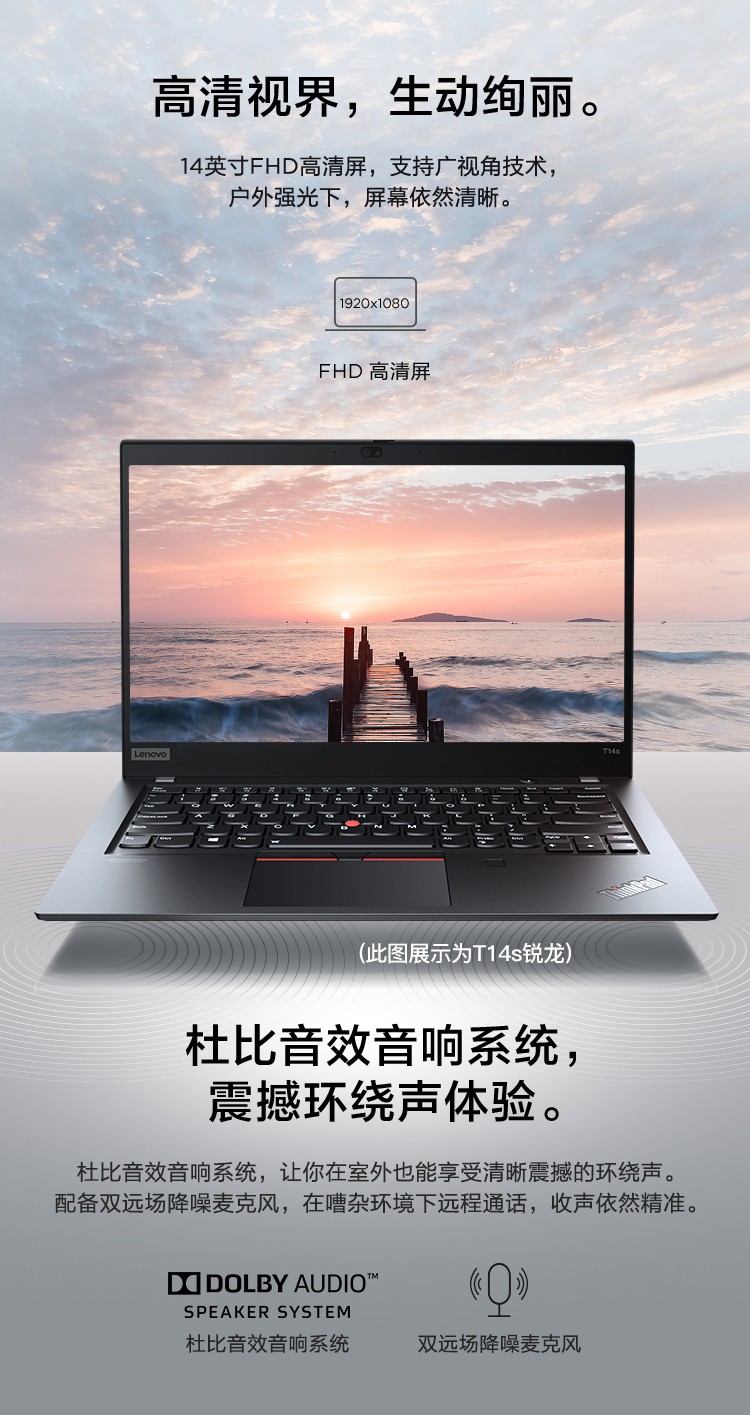☆联想(THINKPAD) T系列 T14 (I7-10510U/8GB/256GB SSD/集成显卡/WIN10HB/1年) 笔记本