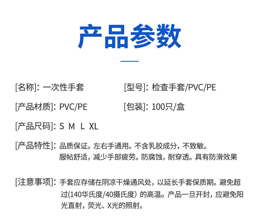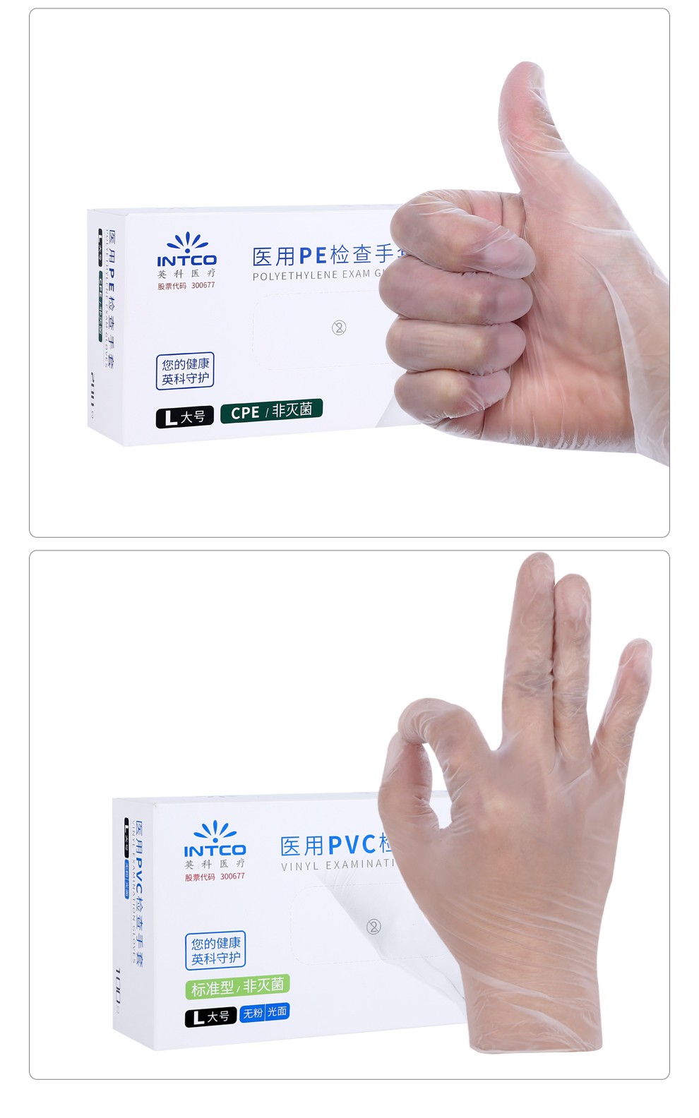 商品名称:英科 医用PVC手套 一次性PVC检查手套100只/盒